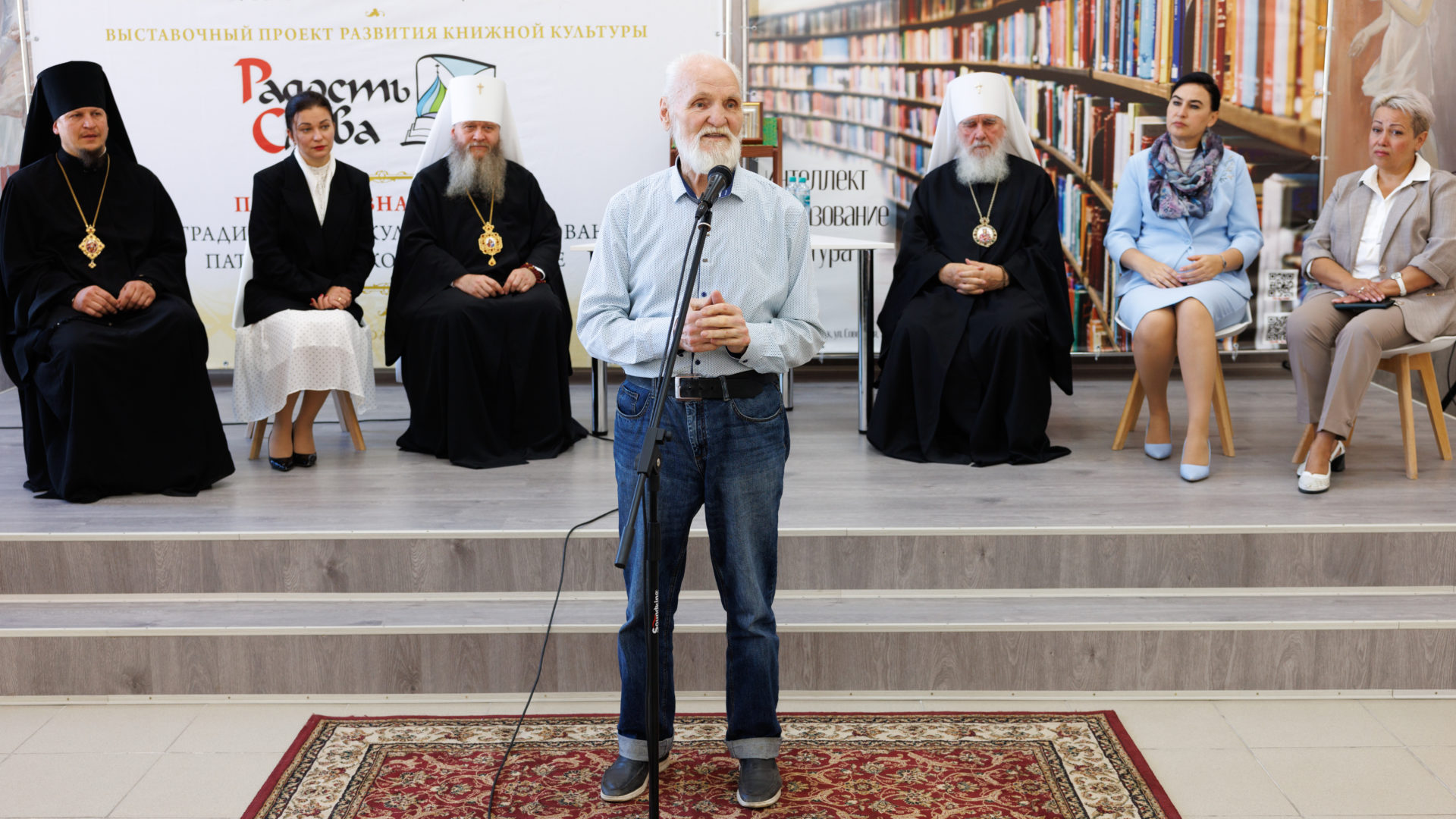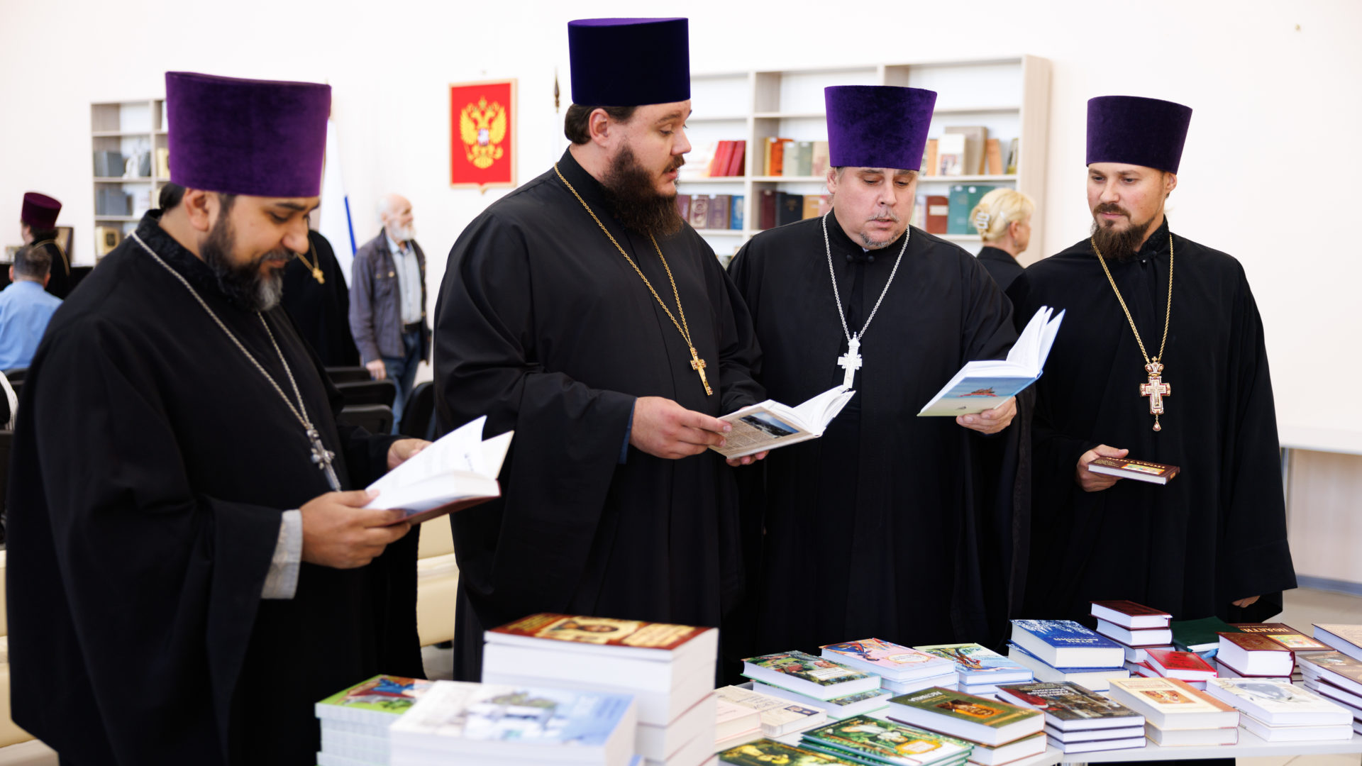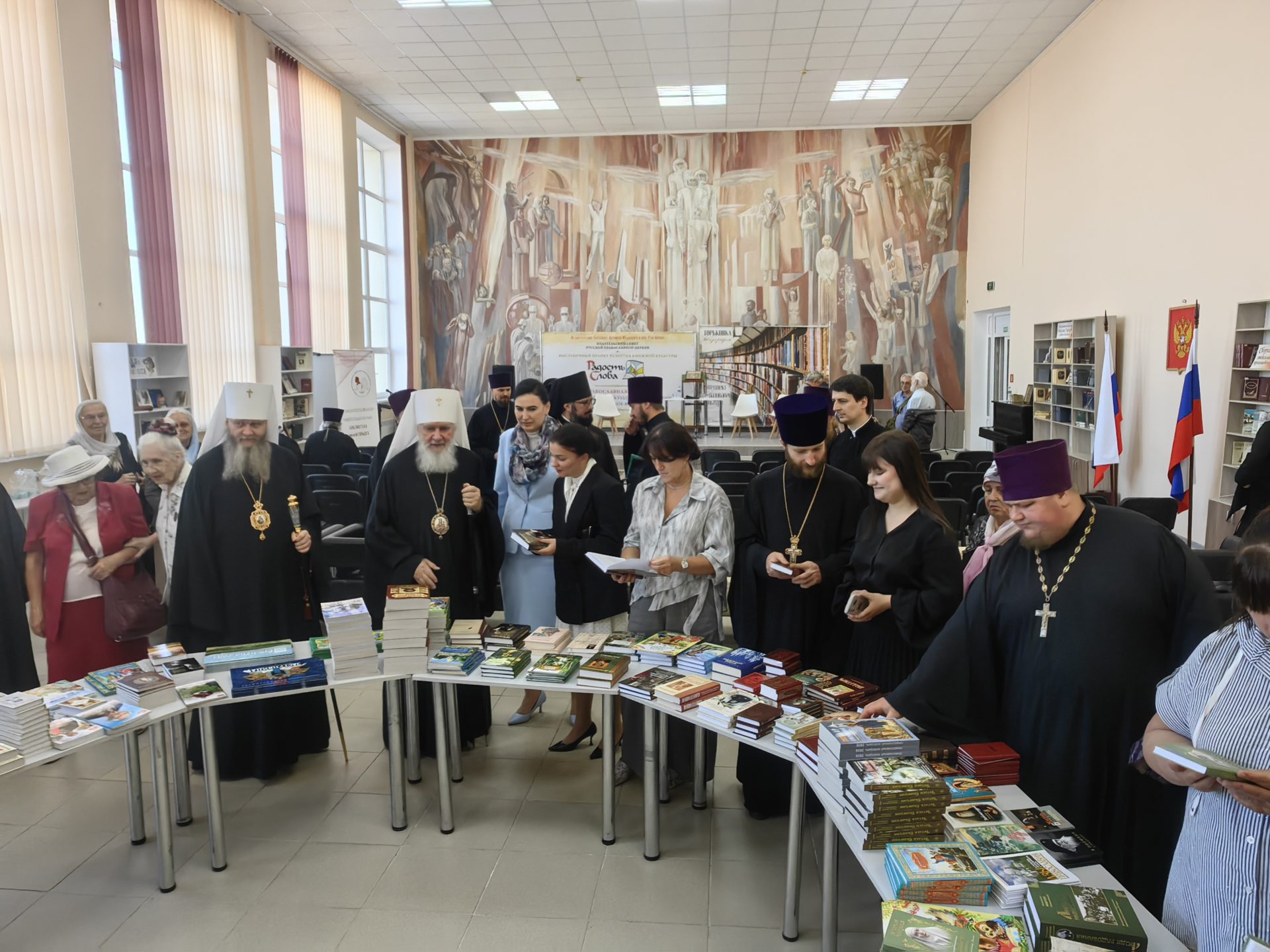 После богослужения в Луганской республиканской универсальной научной библиотеке имени Горького состоялось открытие выставки-форума «Радость Слова».