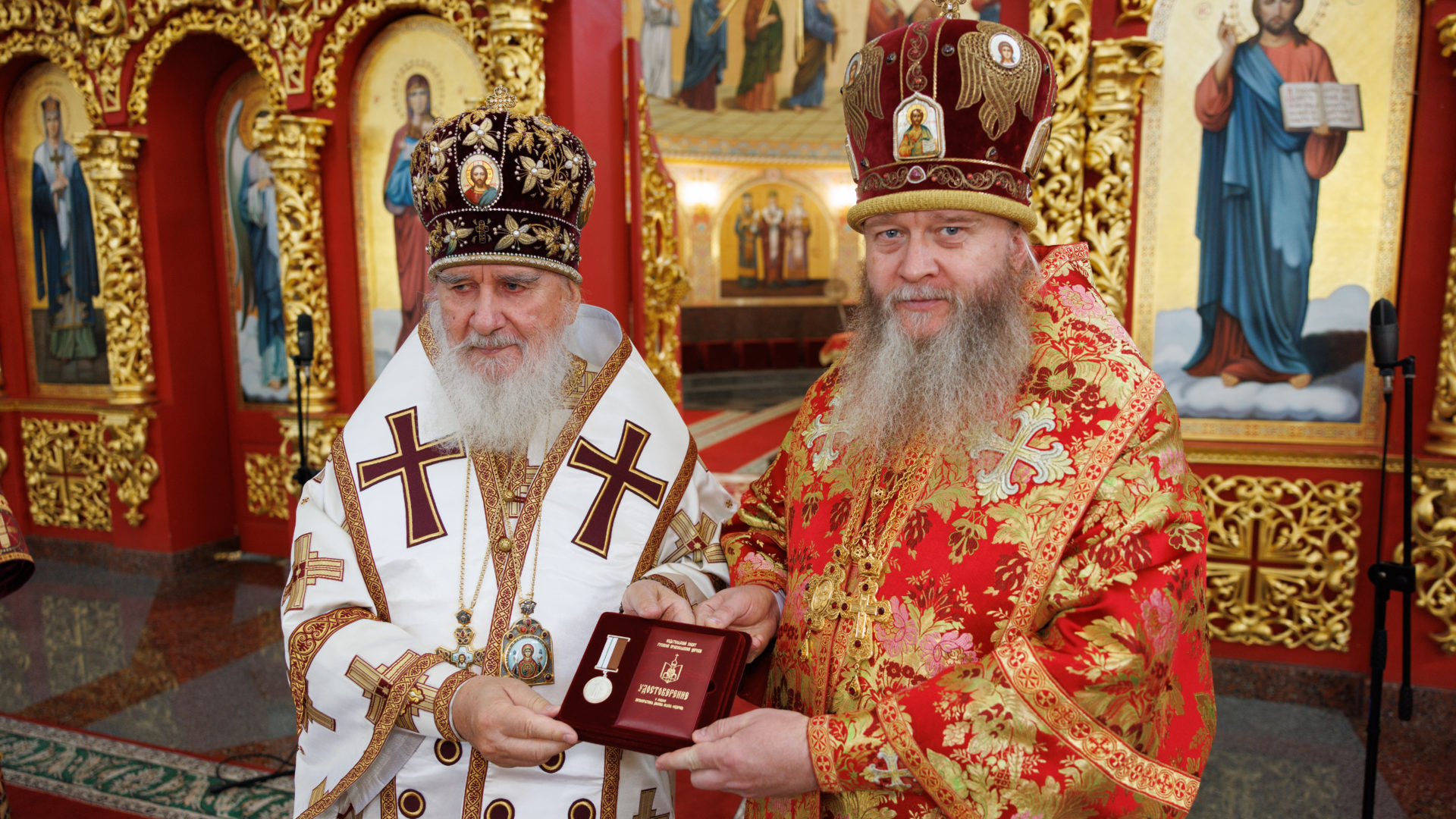 По окончании Божественной Литургии митрополит Климент вручил митрополиту Луганскому и Алчевскому Пантелеимону медаль первопечатника диакона Ивана Федорова за труды на ниве книгоиздания и духовного просвещения.