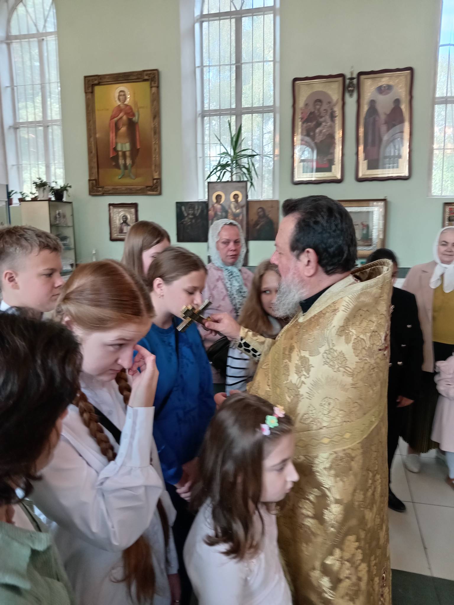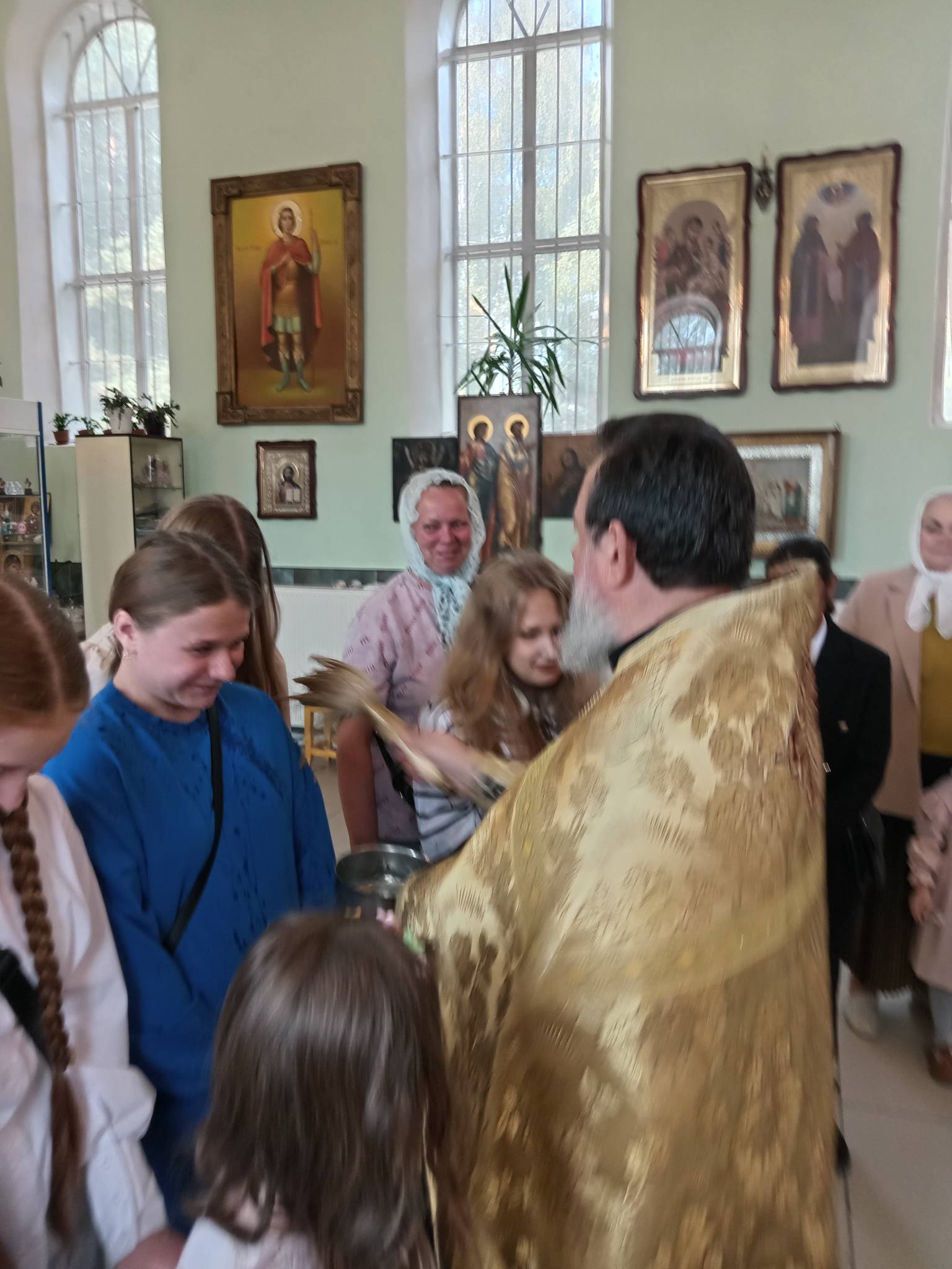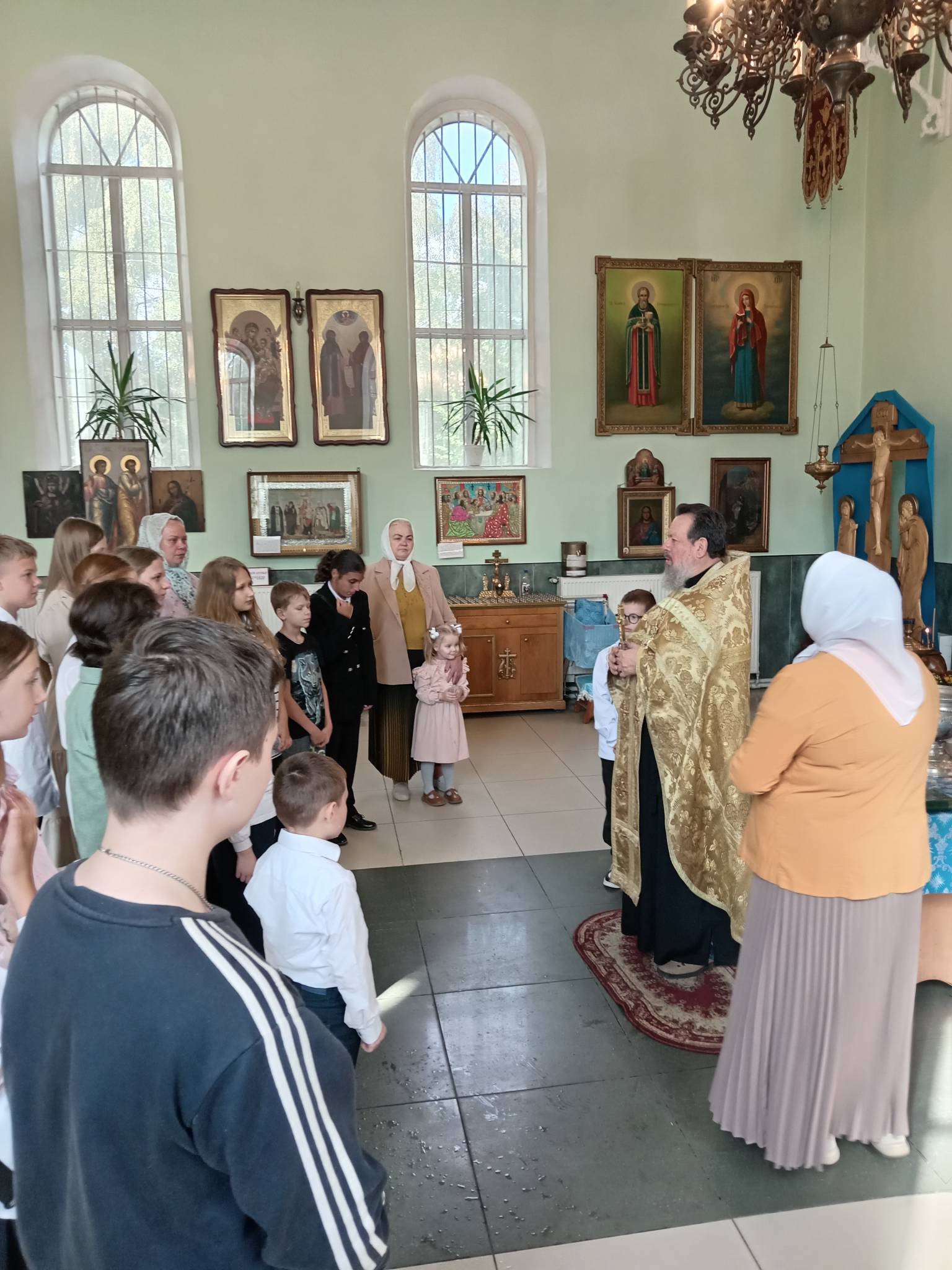 По традиции, после Божественной литургии, настоятелем храма преподобного Сергия Радонежского протоиереем Василием Биляк был отслужен Молебен на начало учебного года, на котором возносились молитвы о ниспослании в сердца, в ум и уста учащихся отроков Духа премудрости, разума и благочестия, о даровании им силы и крепости для принятия благого и полезного учения. На молебне дети пели сами под руководством руководителя школы Клячиной Татьяны Ивановны. С теплыми словами приветствия выступил перед присутствующими настоятель храма и духовник воскресной школы — отец Василий. Батюшка поздравил всех с началом учебного года в Воскресной школе. В своем напутственном слове он обратил внимание на то, что важнейшая задача воскресной школы в том, чтобы воспитать наших детей христианами.