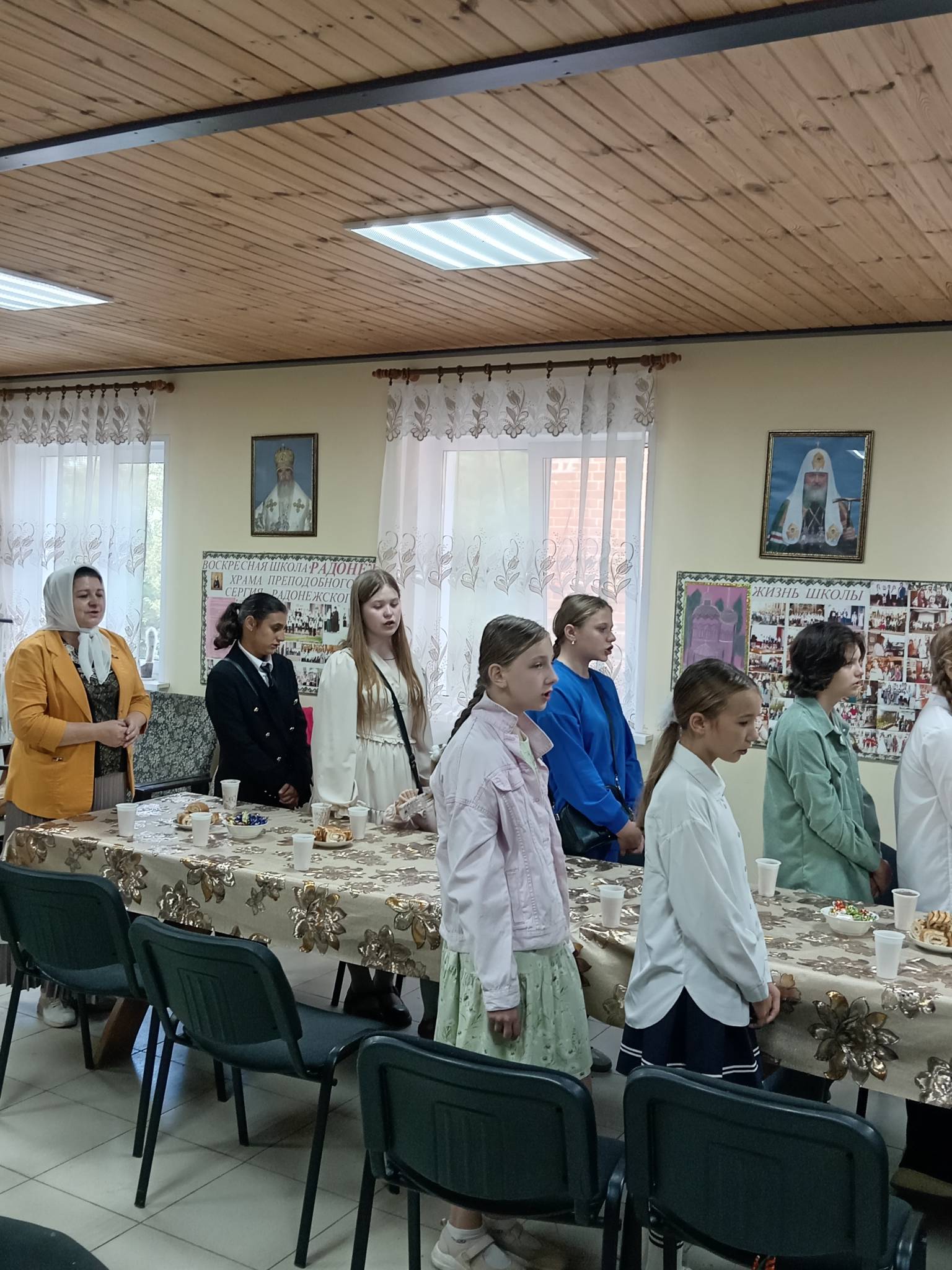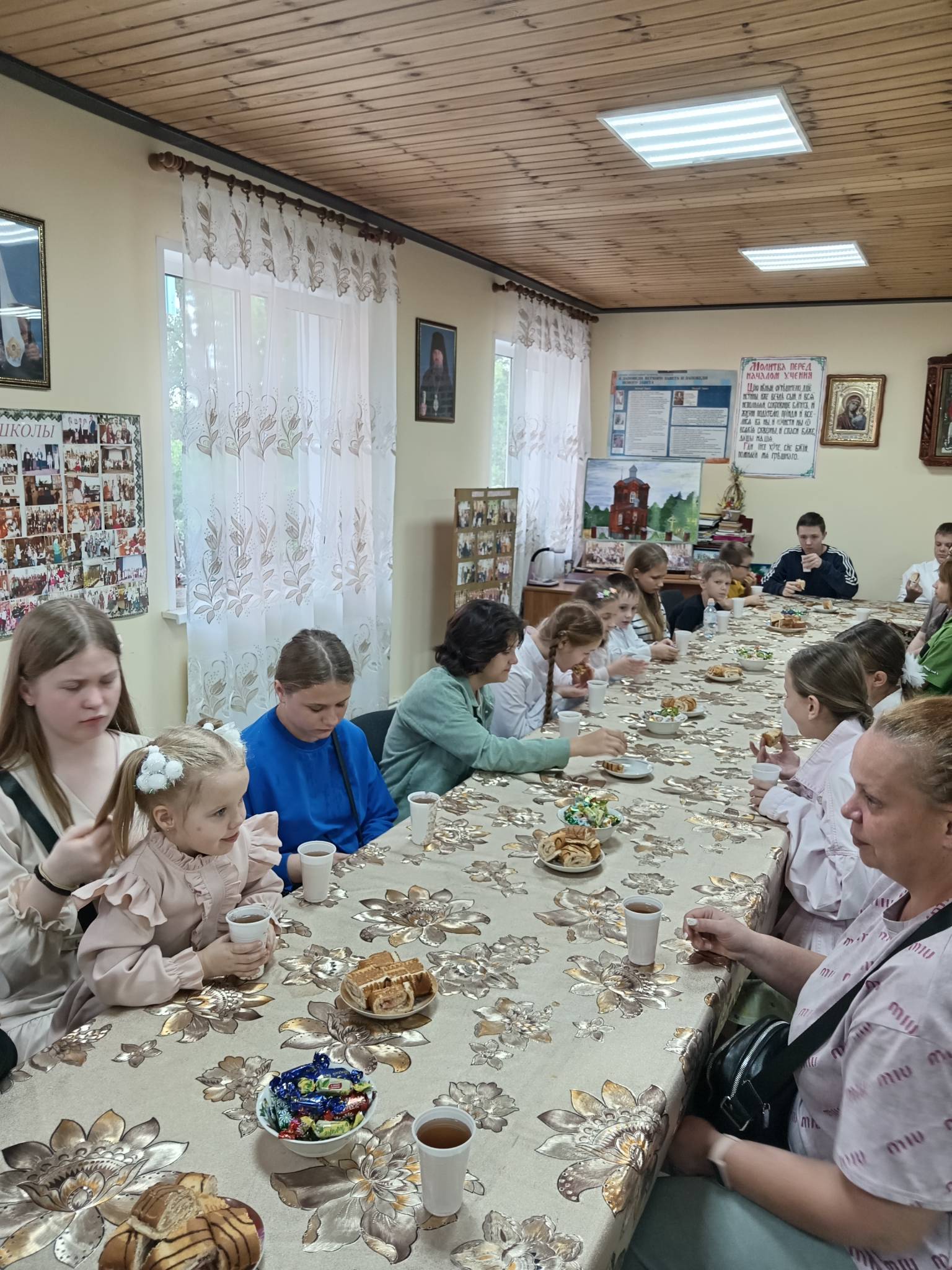 После урока состоялось традиционное чаепитие. Для детей был устроен сладкий стол, приготовленный заботливыми руками матушки Анны, где ребята могли в теплой обстановке побеседовать со своим учителем и друг с другом, встретившись после долгих летних каникул. Мы поздравляем всех с началом учебного года и желаем плодотворной работы, радости и успехов в учебе. Пусть этот учебный год станет временем для духовного роста и новых достижений! Воскресная школа «Радонеж» вновь открыла свои двери. Мы ждем ребят каждое воскресенье с любовью в своих уютных стенах.