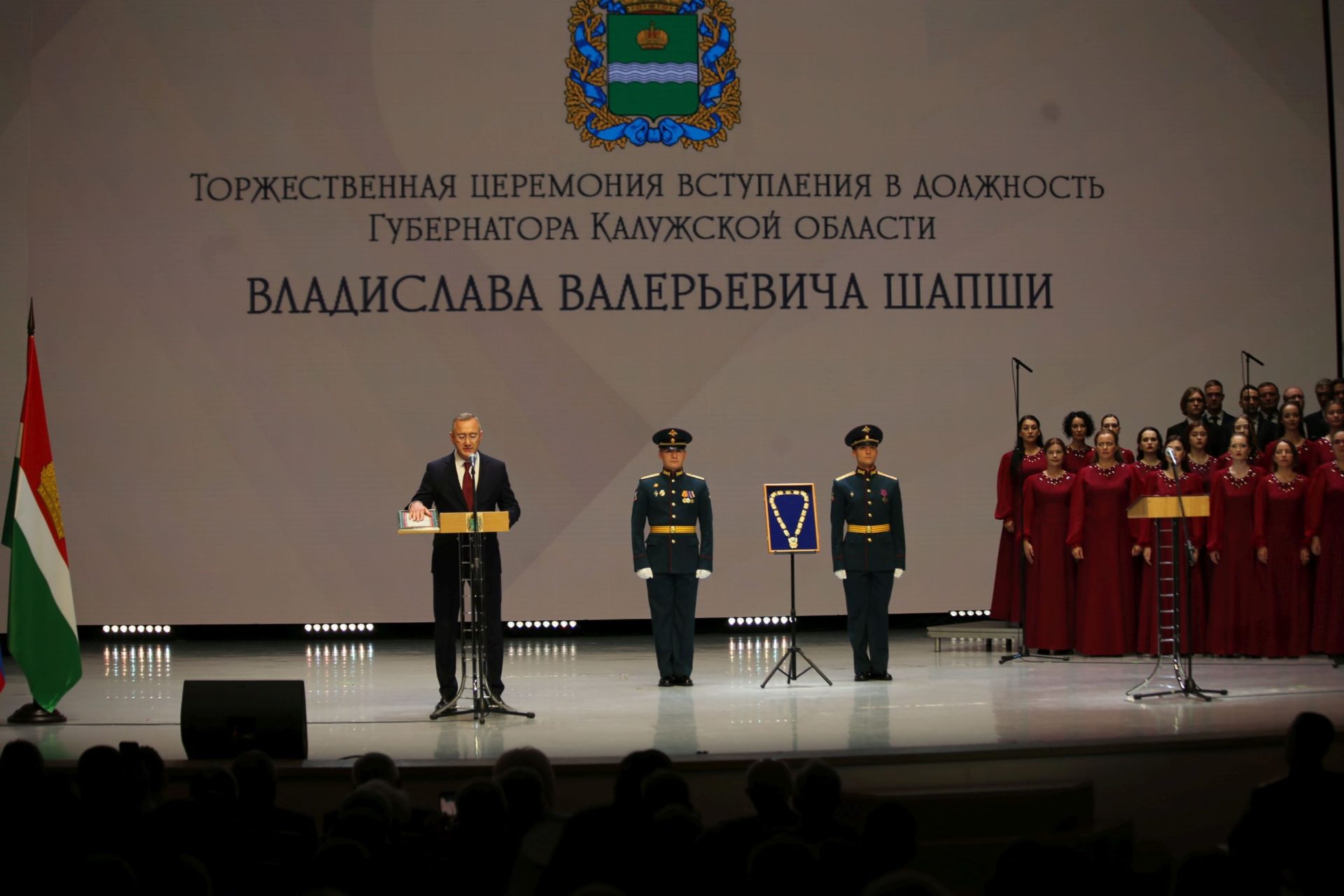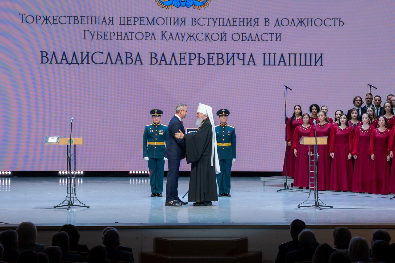 19 сентября в Концертном зале Областной филармонии состоялась церемония инаугурации Владислава Валерьевича Шапши в связи с его переизбранием на пост губернатора Калужской области. В присутствии депутатов, почетных граждан города и региона, а также других гостей он принес присягу на верность России и Калужской области.