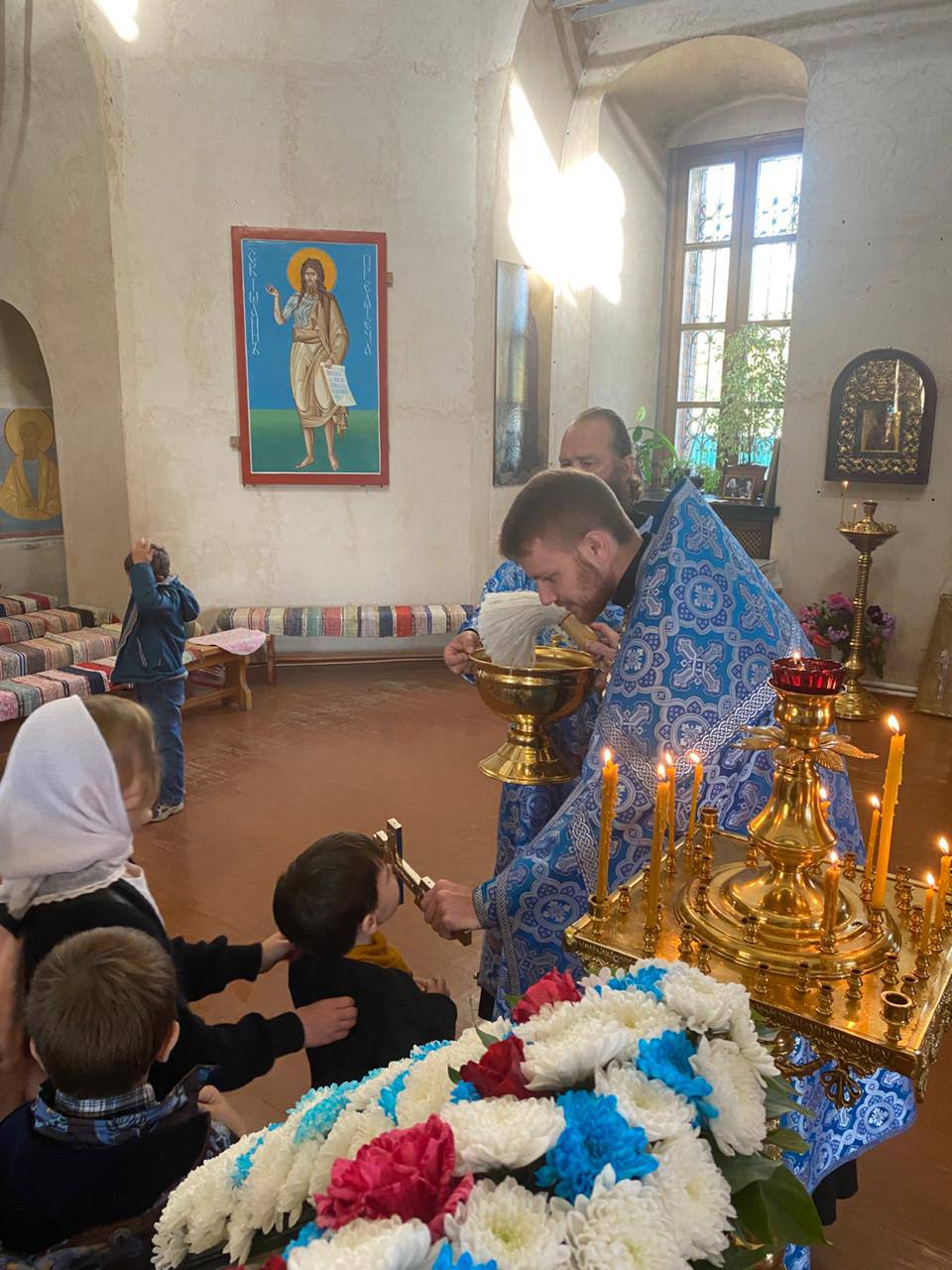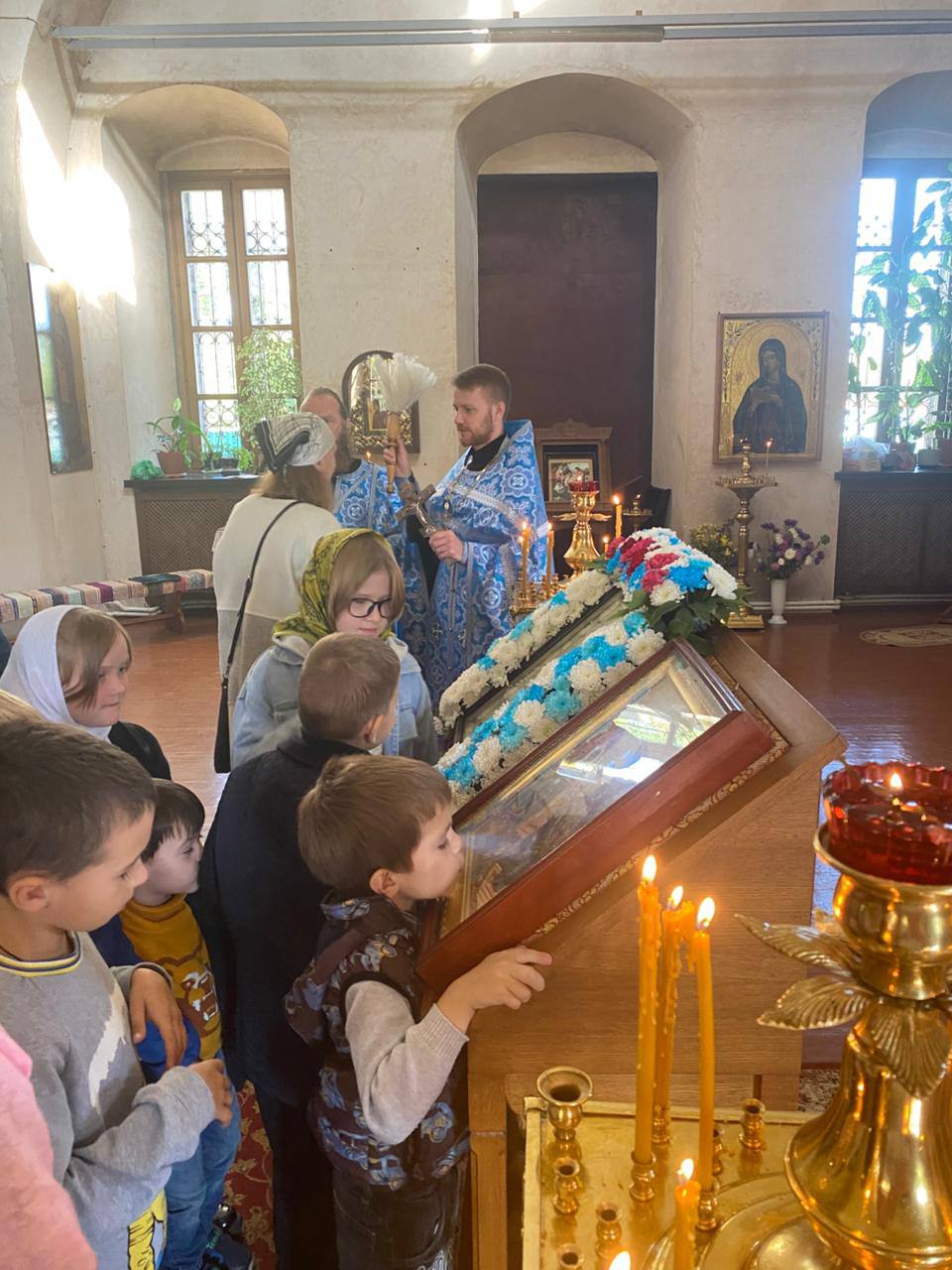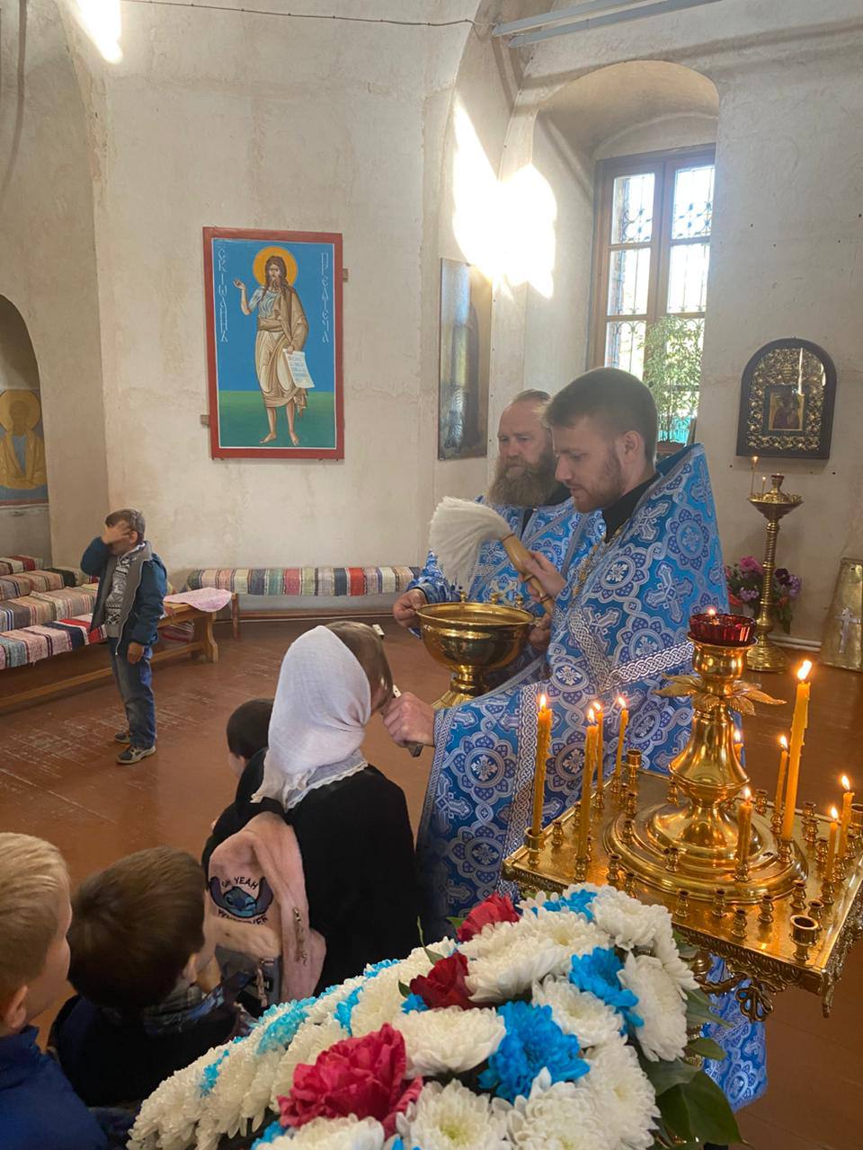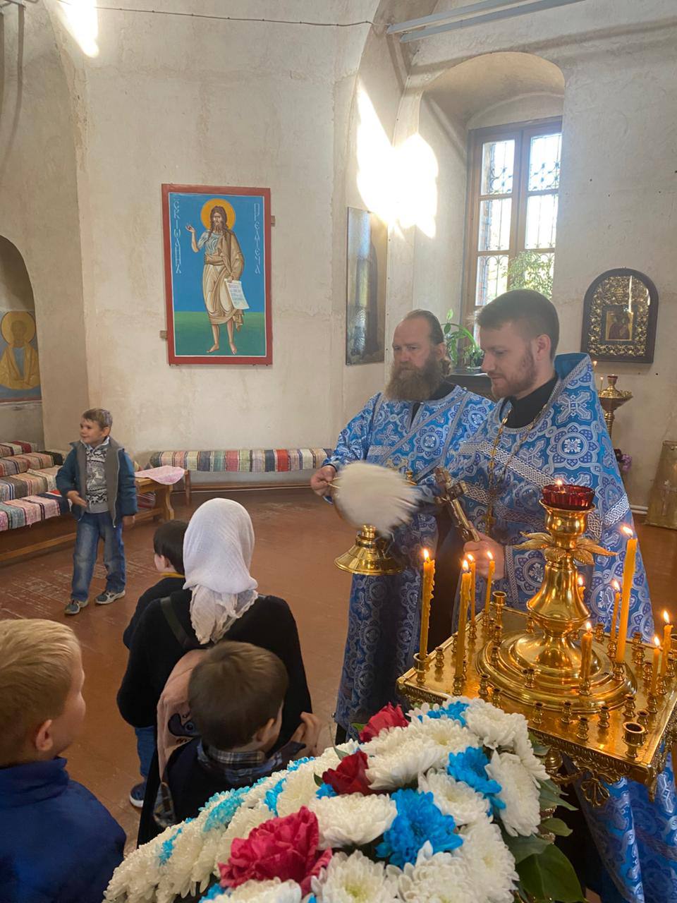 После Литургии, директор Воскресной школы, иерей Елисей Тимофеев, отслужил праздничный молебен на начало нового учебного года.