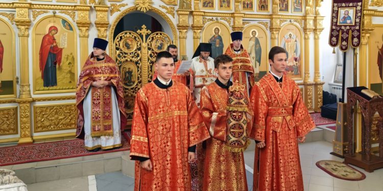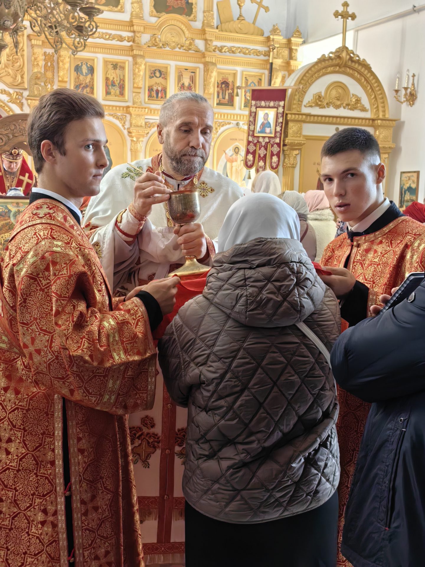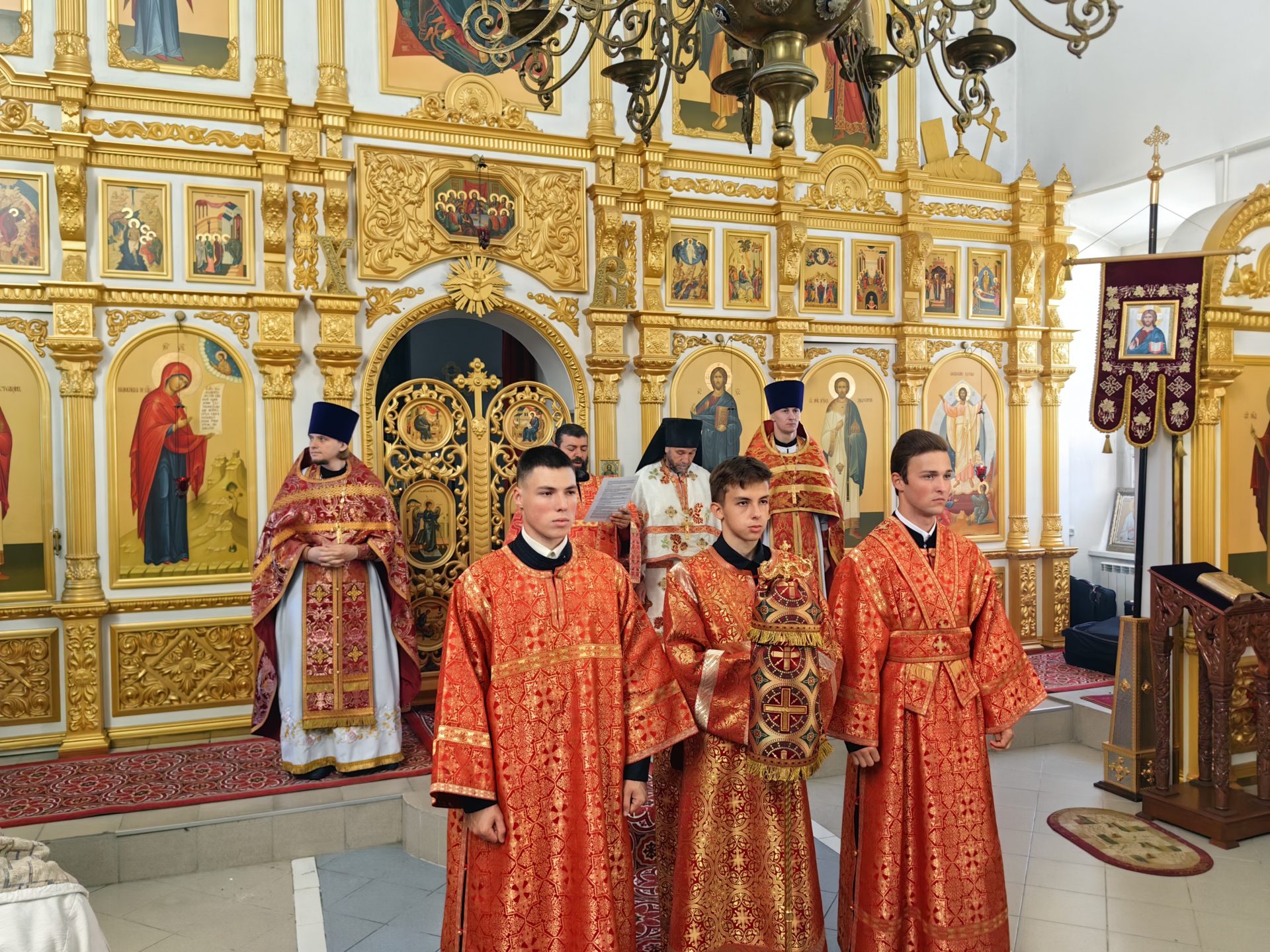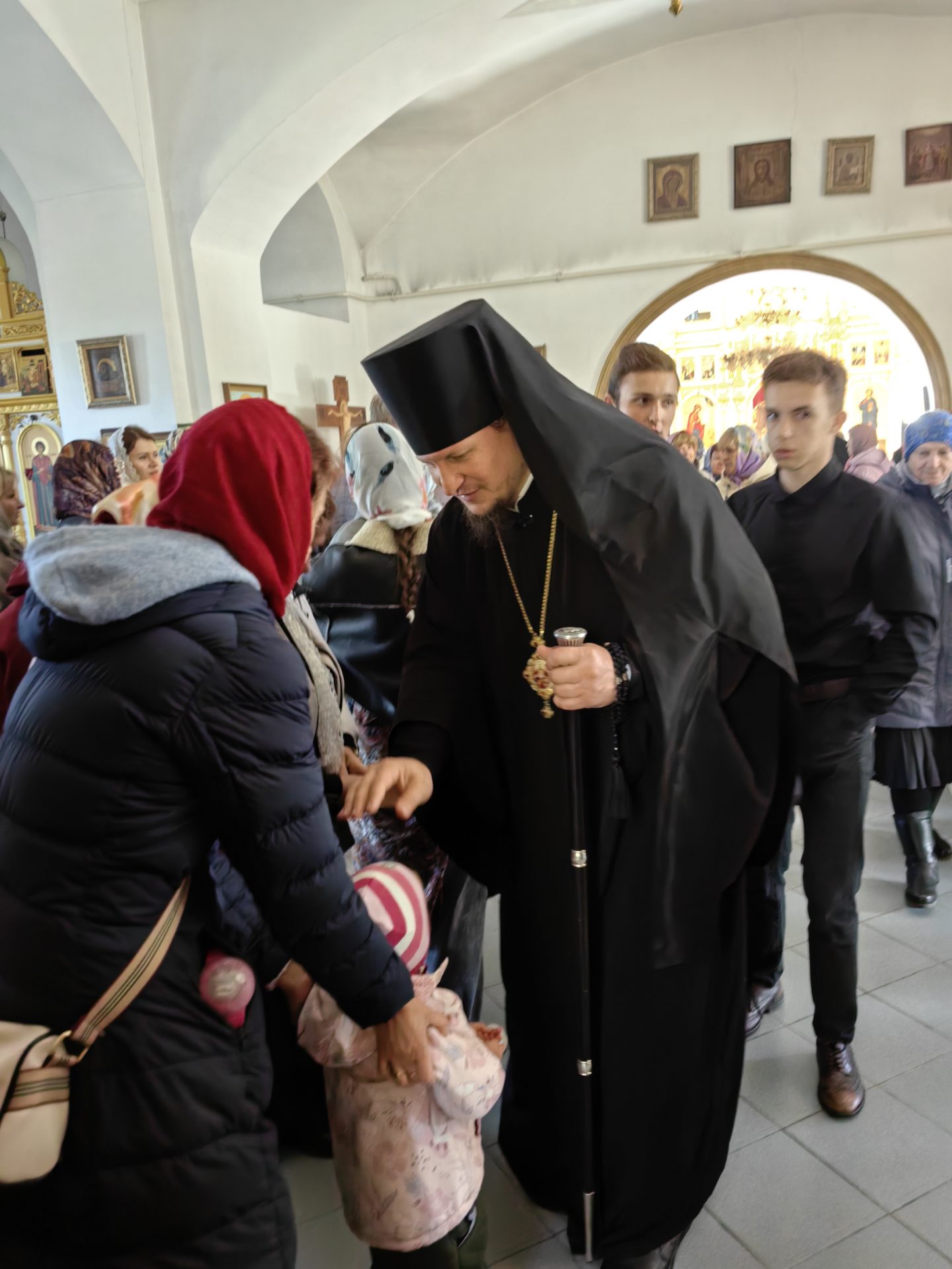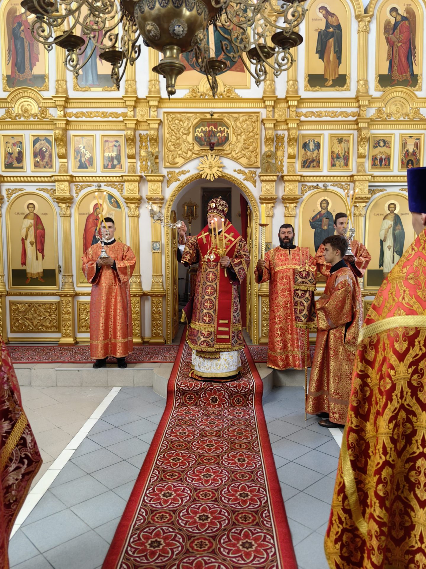 Епископу сослужили: настоятель храма иеромонах Иеремия (Ильченко), священник Кирилл Кислов, заведующий канцелярией Козельской епархии священник Филипп Лисенков и диакон Сергий Акопян.