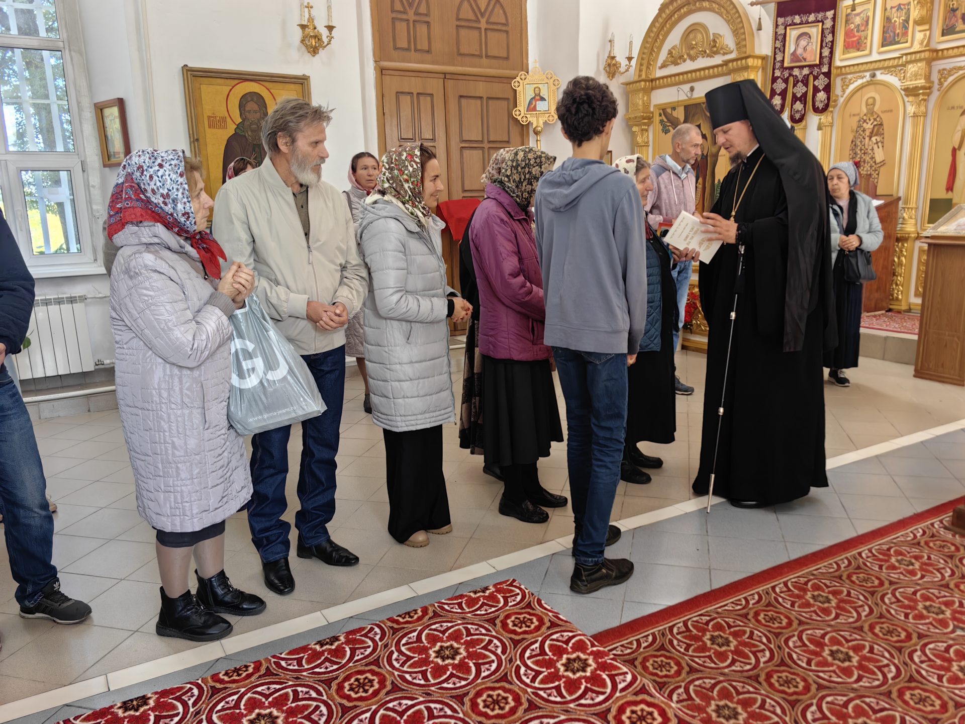 Епископ Макарий обратился к прихожанам и паломникам храма со словом проповеди: «Удивительный праздник, осенняя Пасха, который совершается в престольный день этого старинного храма! Некогда равноапостольная царица Елена, придя в Иерусалим, не нашла ничего, что бы свидетельствовало о месте страданий Спасителя, о Его Воскресении. И она усердно продолжала искать, пока не был обретено древо Креста Господня. Обновление храма Воскресения Христова было в древности очень большим праздником и за ним следовал день Крестовоздвижения. Мы сегодня молитвенно вспоминаем строителей, братию сего святого храма и радуемся его возрождению, восстановлению, как когда-то радовались верные возрождению Храма Воскресения Христова. Ваши молитвы и труды тоже являются вкладом в возрождение этого святого места и пусть Господь воздаст вам сторицею за ваше усердие и любовь!»
