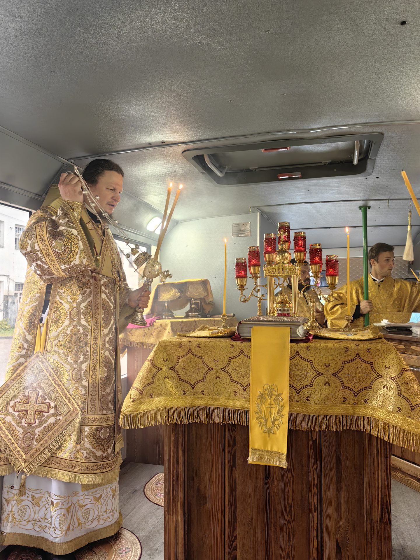 В Неделю по Воздвижении епископ Макарий совершил первую Божественную Литургию в передвижном храме в п. Стекольный завод