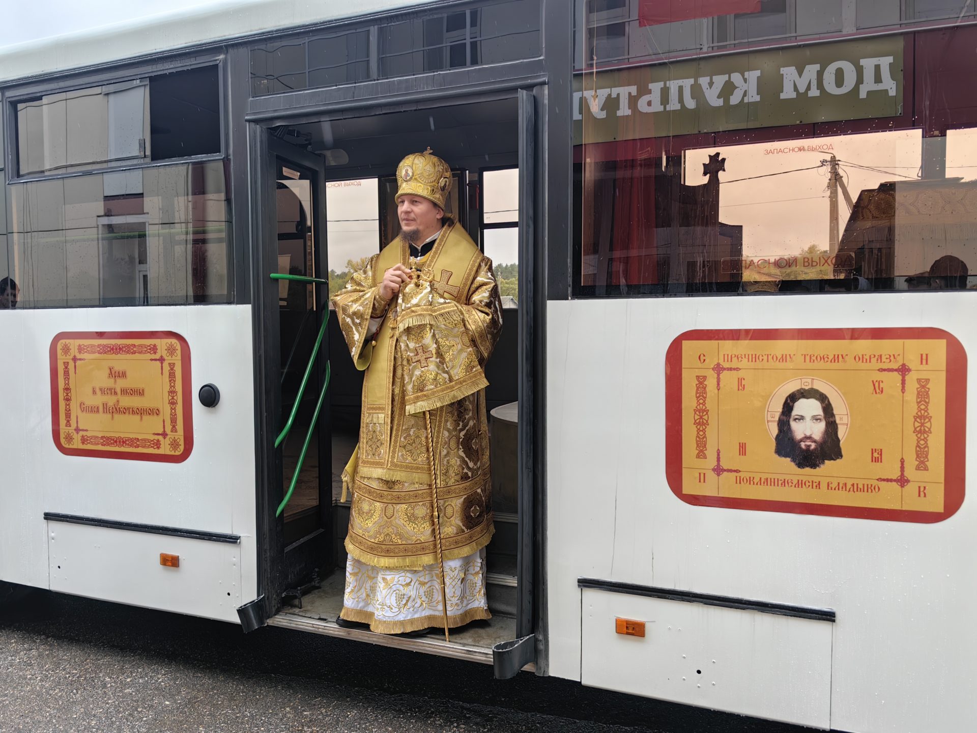 Передвижной храм был освящен в праздник Спаса Нерукотворного Высокопреосвященнейшим митрополитом Калужским и Боровским Климентом, архиепископом Песоченскии и Юхновский Максимилианом и епископом Козельским и Людиновским Макарием.
