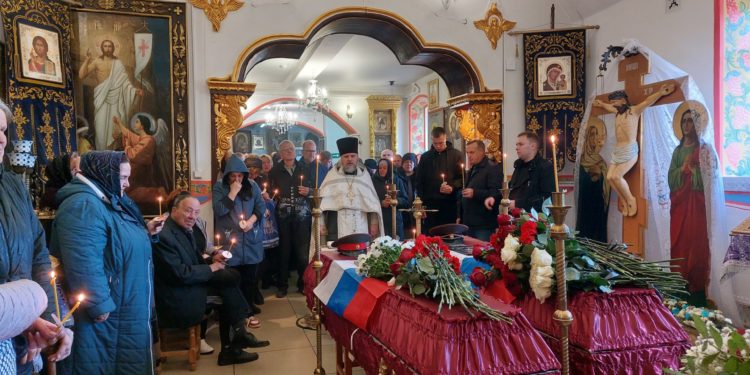 В Свято-Лазаревском храме города Людиново прошло отпевание погибших в зоне Специальной военной операции воинов