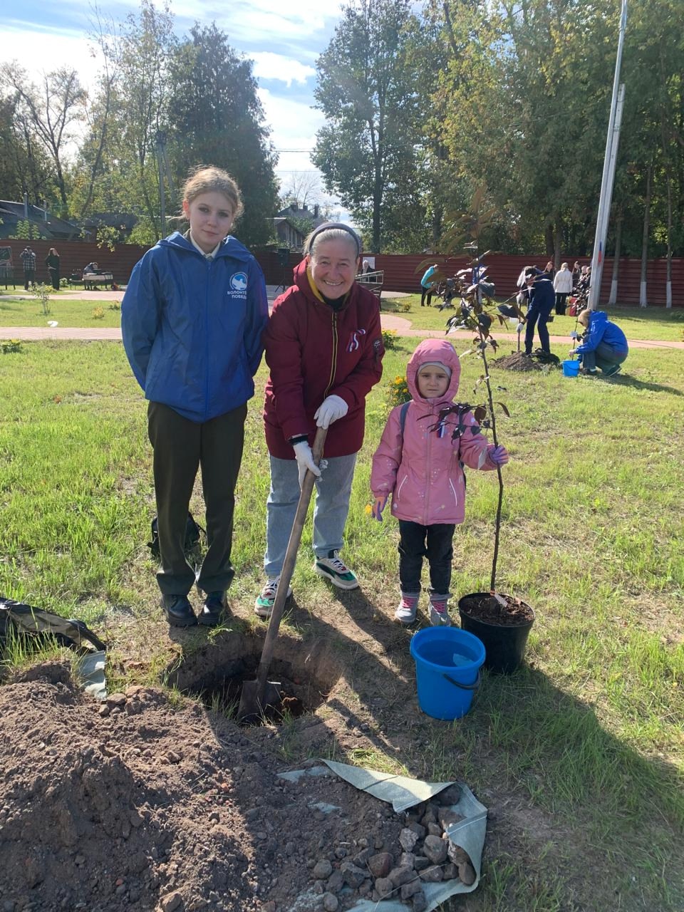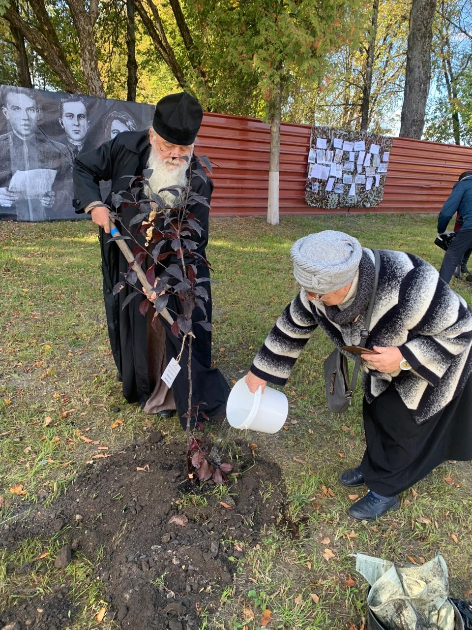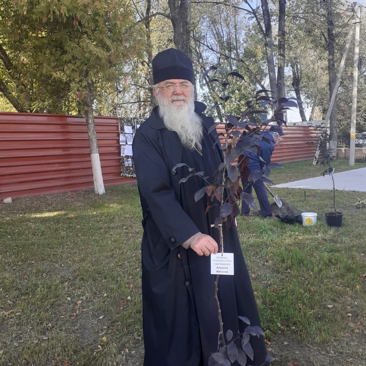 Отец Алексий, как и другие почётные гости, и участники торжественного мероприятия, сажали памятную аллею из молодых деревьев. На каждом саженце была размещена табличка с пояснением, кто сажал данное молодое дерево или в честь какого героя, которым гордится Людиновская земля, будет расти дерево.