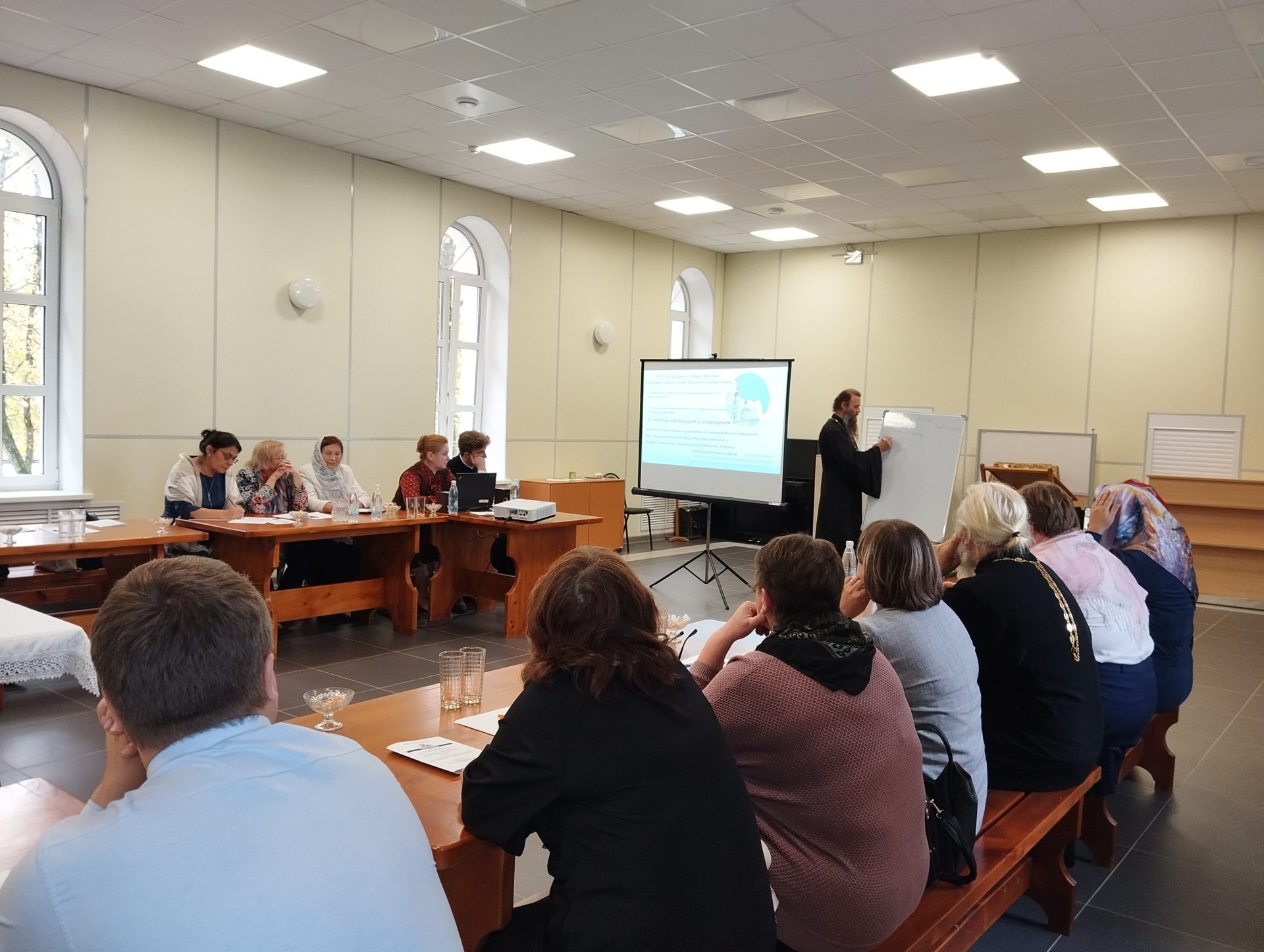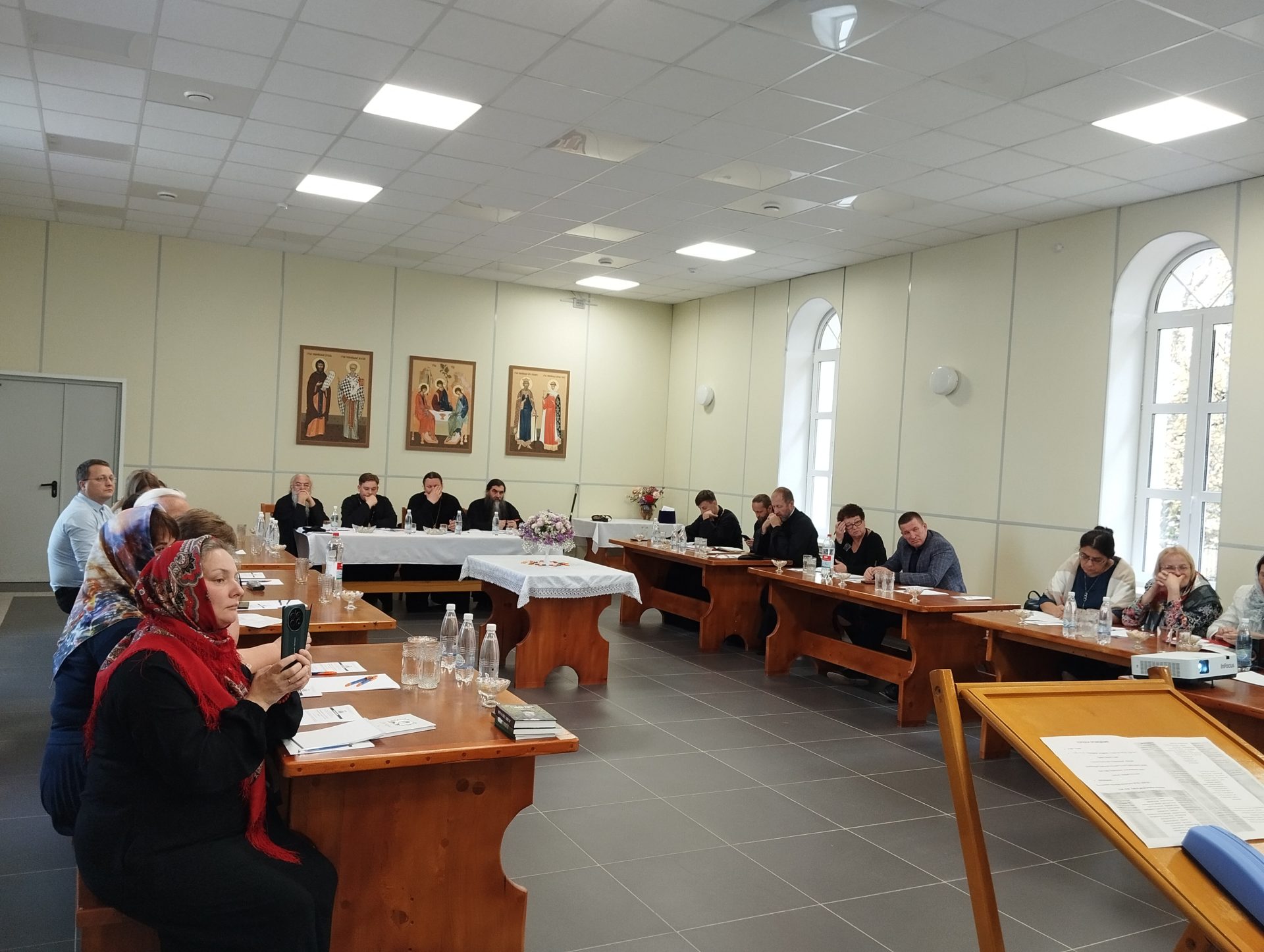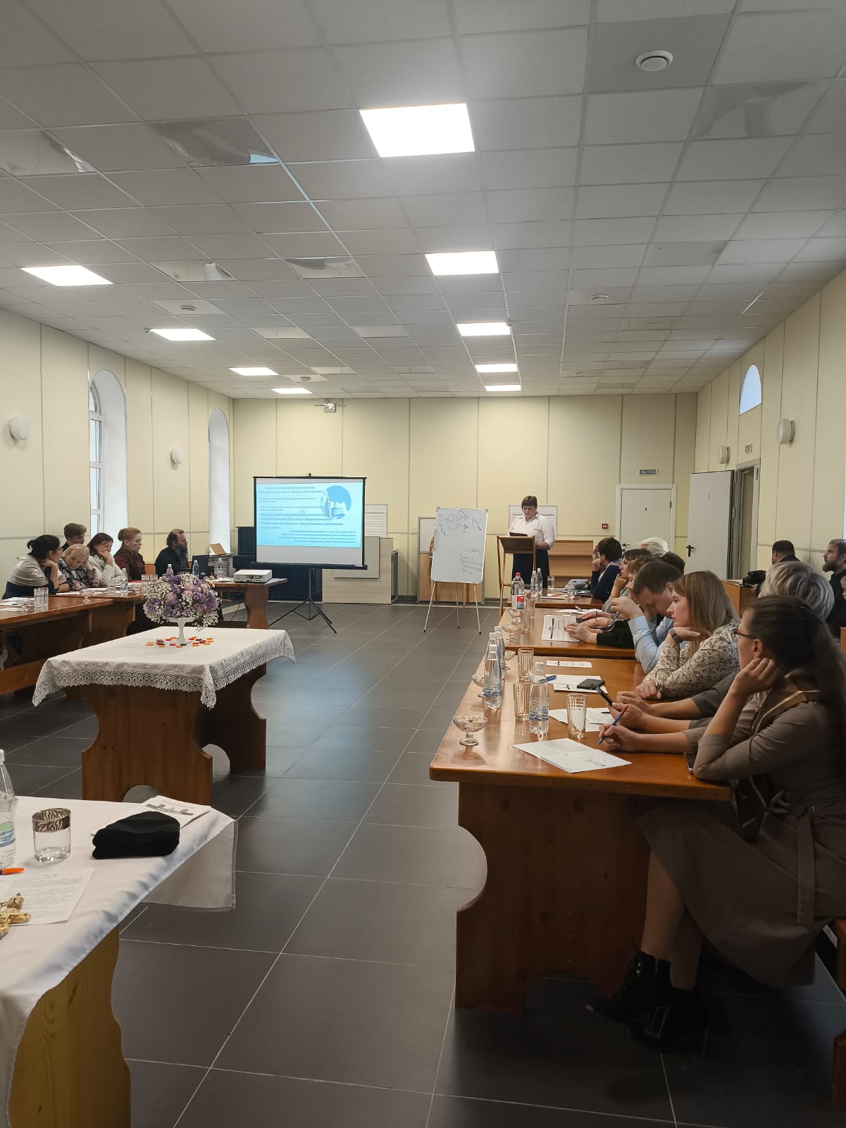 На первую дискуссионную площадку в большом трапезном зале Духовно – просветительского центра «Светоч» при Казанском соборе города Людиново, куратором которой был иерей Дмитрий Торшин, были приглашены руководители образовательных учреждений, священнослужители. В работе первой площадки принял участие и Владыка Макарий. Это была самая многочисленная секция, где священнослужители, руководители и их заместители слушали интересные доклады выступающих, дискутировали и высказывали свое мнение по наболевшим вопросам, делились опытом своей деятельности. Здесь обсуждались вопросы взаимодействия приходов Козельской епархии с образовательными учреждениями, вопросы социальной направленности, помощь воинам на СВО, работа с трудными подростками, а также духовно – просветительская деятельность воскресных школ для детей и взрослых.