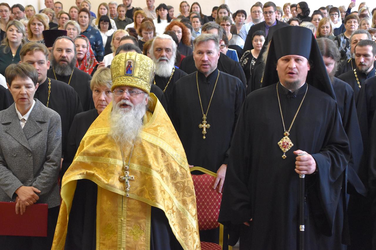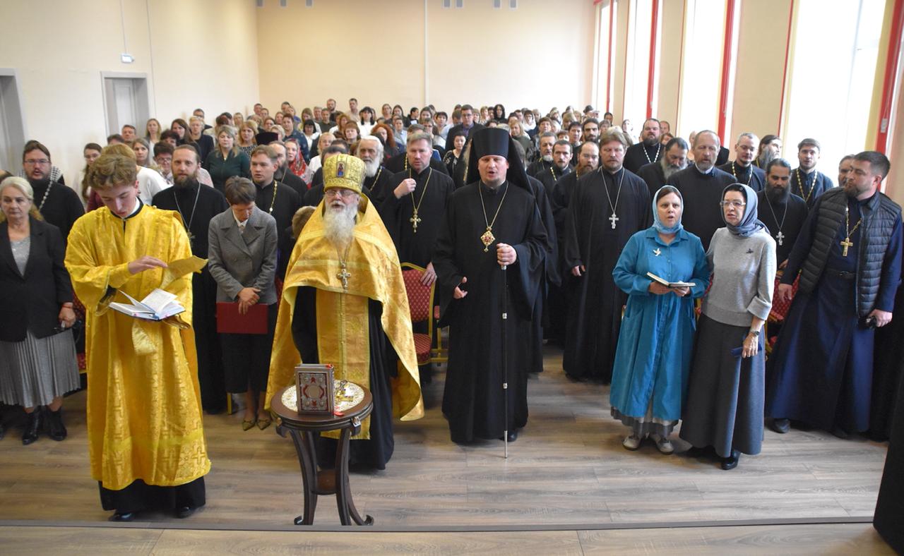 Началось пленарное заседание с молебна на благое дело, которое по благословению Правящего Архиерея, совершил благочинный Людиновского округа настоятель Казанского собора города Людиново протоиерей Алексий Жиганов в сослужении диакона Никиты Агарёва. После исполнения Гимна Российской Федерации началась торжественная часть выездного заседания.