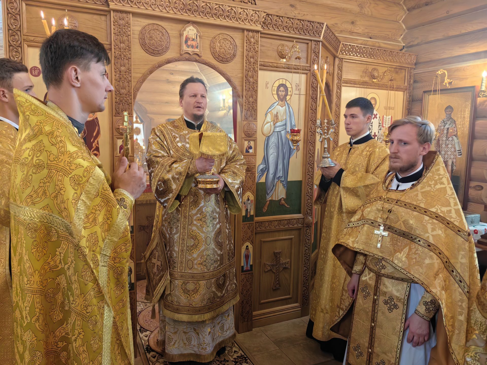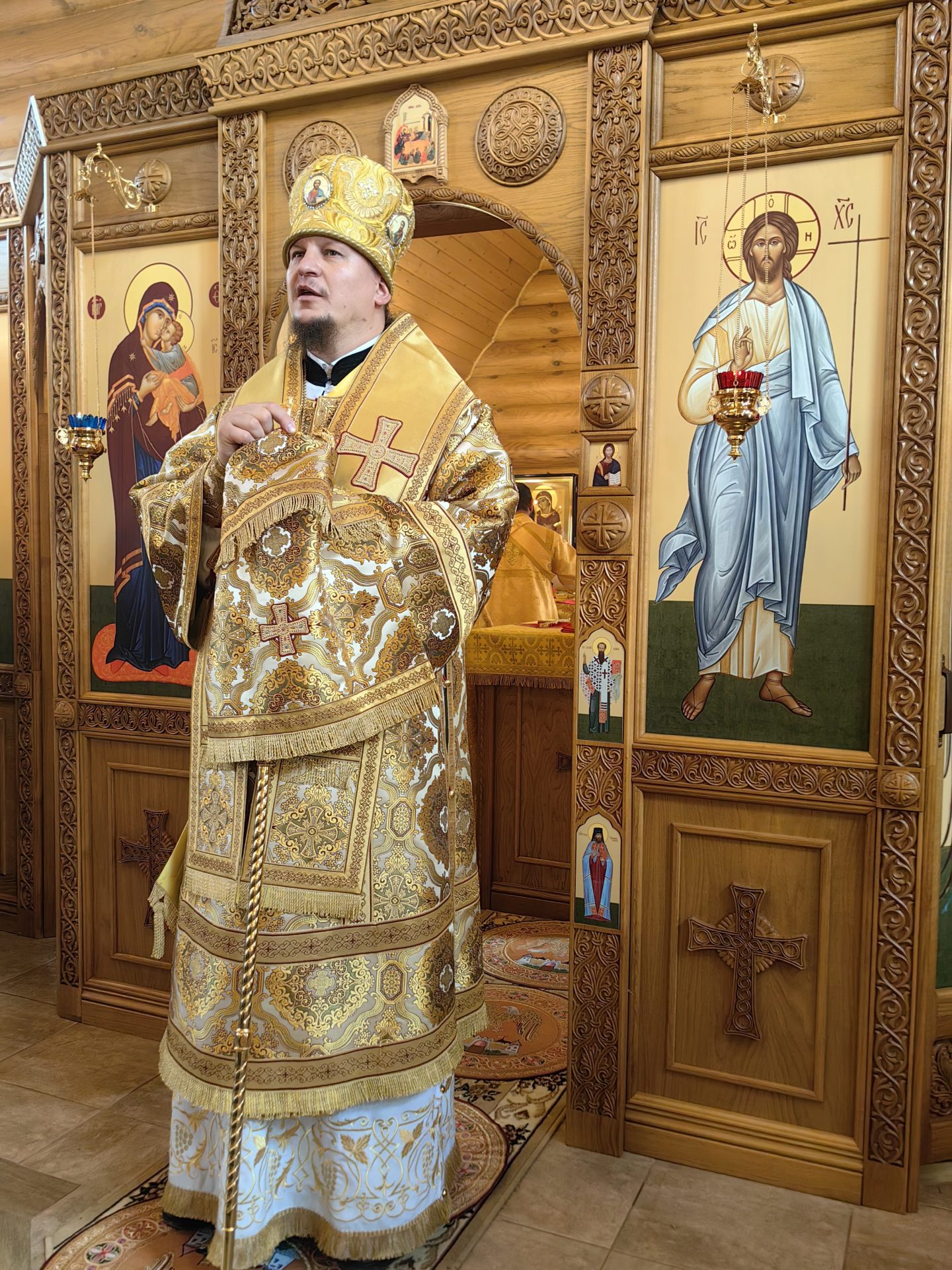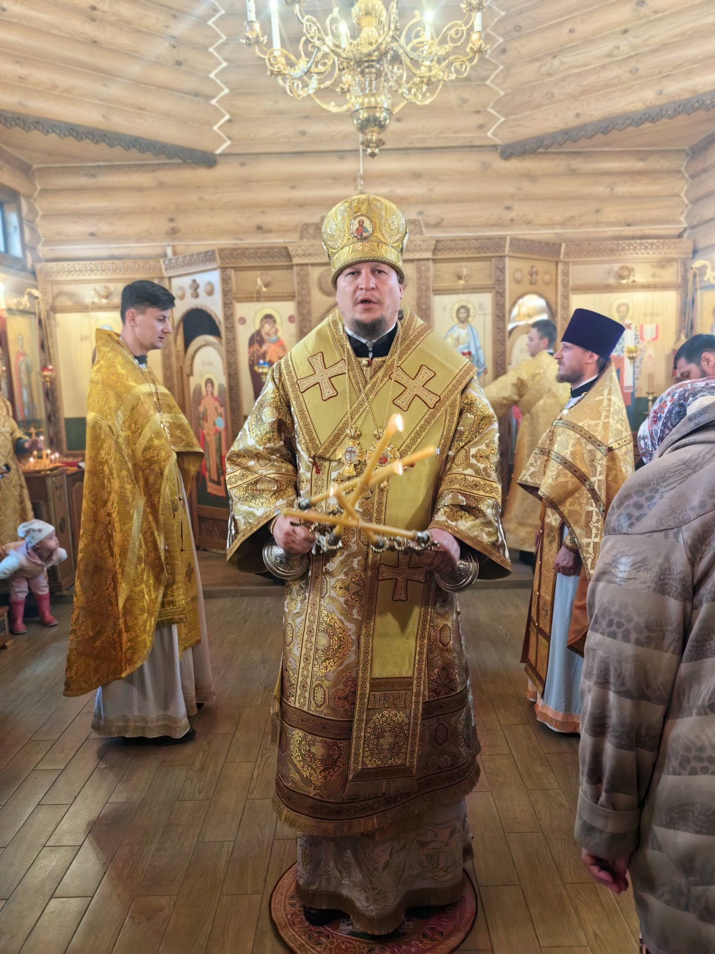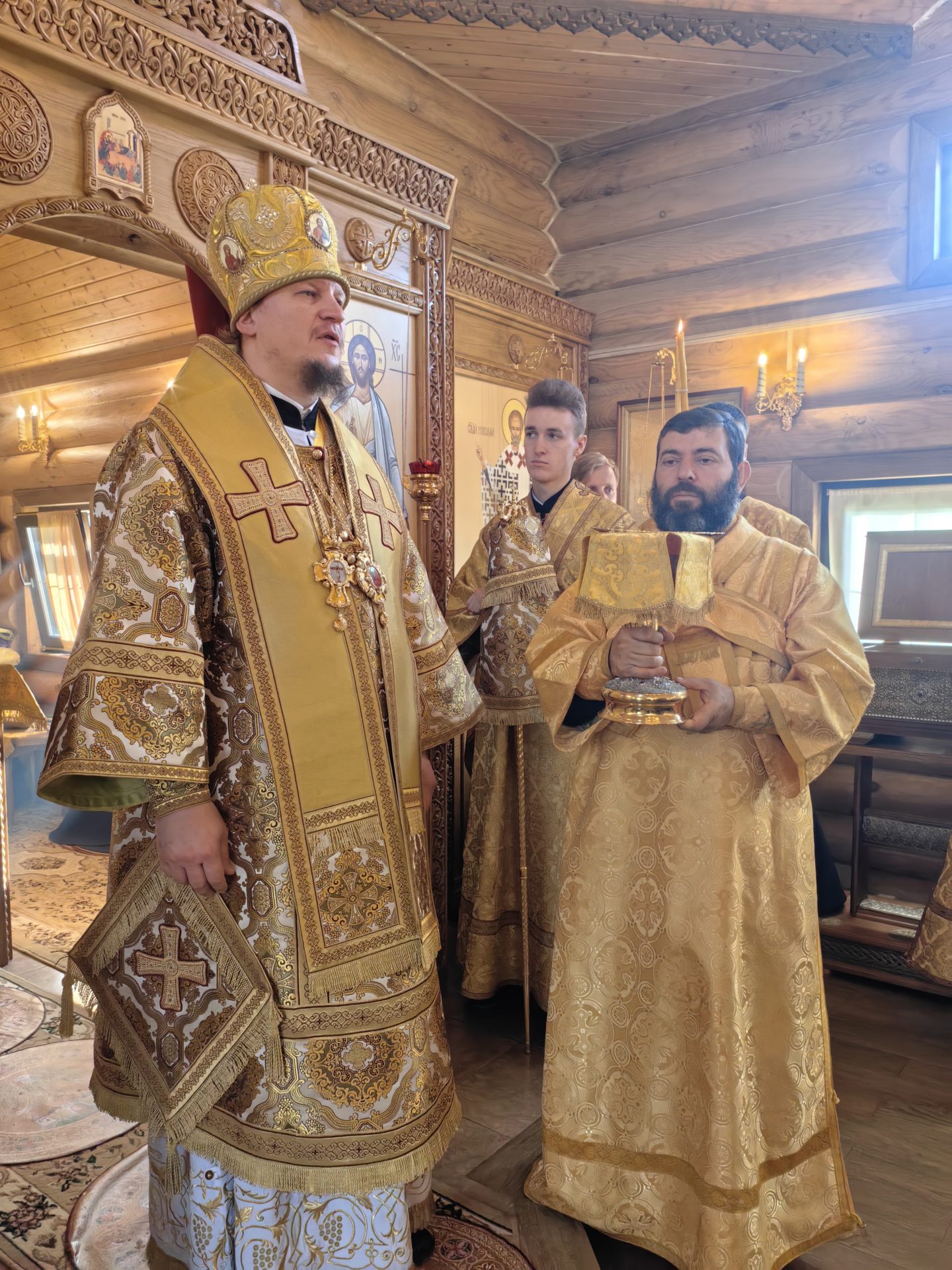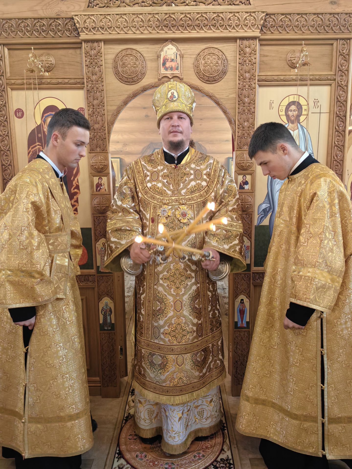 Епископу сослужили: настоятель храма священник Лев Шиповский, Секретарь Епархиального Совета священник Филипп Лисенков и диакон Сергий Акопян.