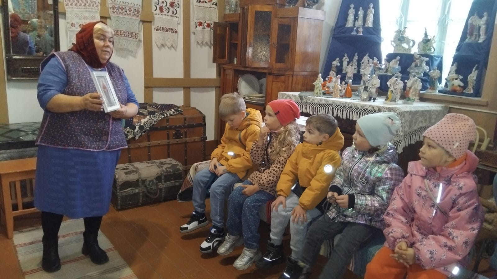 Экскурсию провела сотрудник церковного музея Елена Девина. Она рассказала юным гостям о празднике Покрова Пресвятой Богородицы. Малыши читали стихи, посвящённые Богородице, и пели песни о празднике. Много интересного и познавательными узнали в этот день дошколята и о  русском быте.