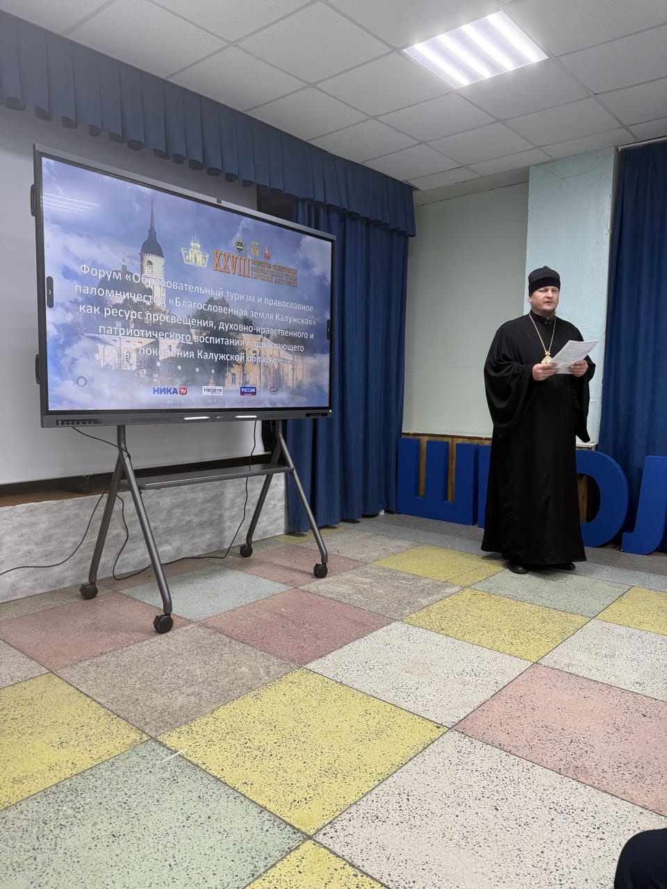 13 октября в рамках направления «Церковь и культура» XXVIII Богородично-Рождественских образовательных чтений Калужской митрополии в актовом зале МБОУ «Средняя общеобразовательная школа № 10» г. Калуги состоялся форум «Образовательный туризм и православное паломничество «Благословенная земля Калужская» как ресурс просвещения, духовно-нравственного и патриотического воспитания подрастающего поколения Калужской области».