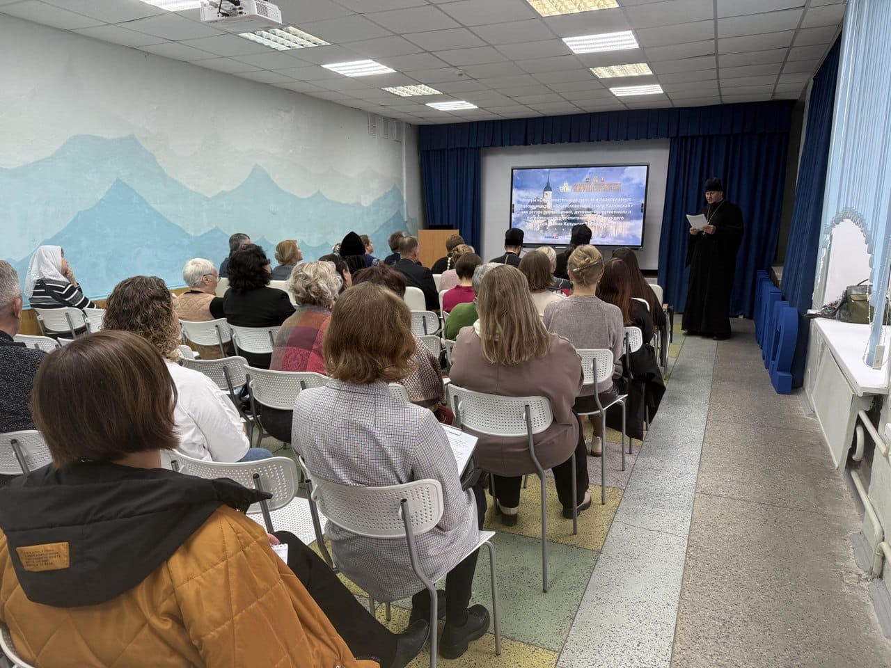 Кывыржик Анастасия Сергеевна, учитель истории МБОУ «Средняя общеобразовательная школа № 17» г. Калуги выступила с сообщением: «Духовные корни Калужской земли: взаимодействие школы и Церкви в образовательном туризме как основе патриотического и нравственного воспитания».