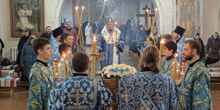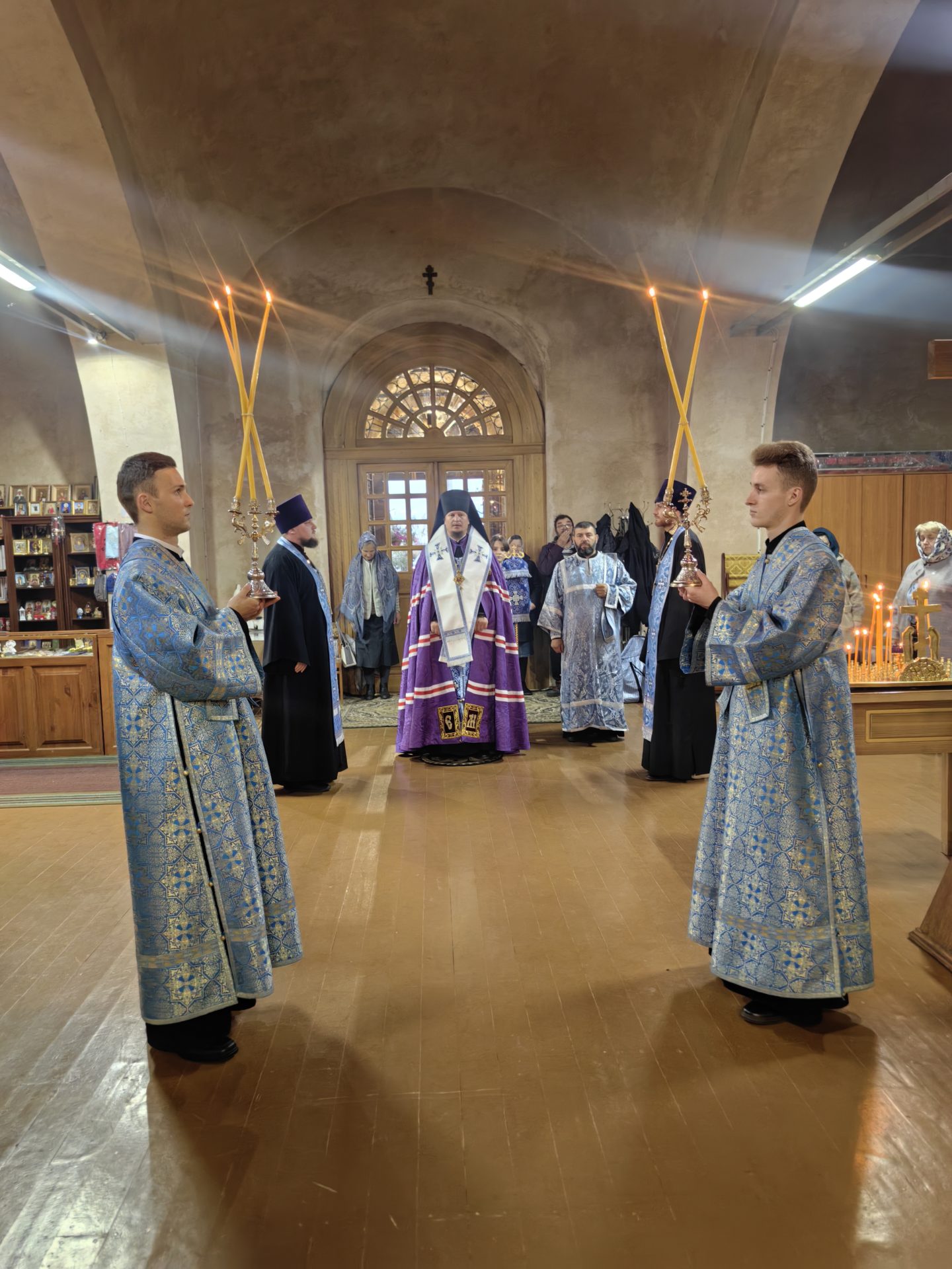 13 октября накануне праздника Покрова Пресвятой Богородицы епископ Козельский и Людиновский Макарий совершил Всенощное Бдение в Успенском кафедральном соборе Козельска.