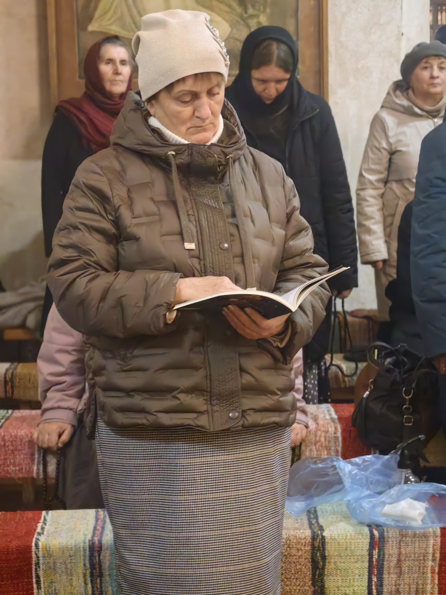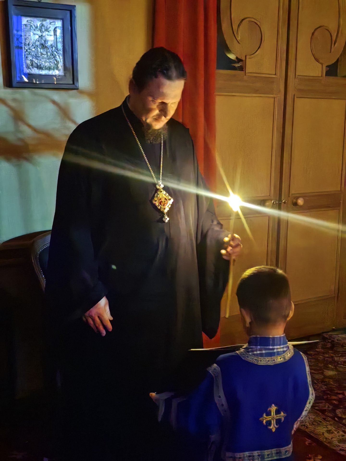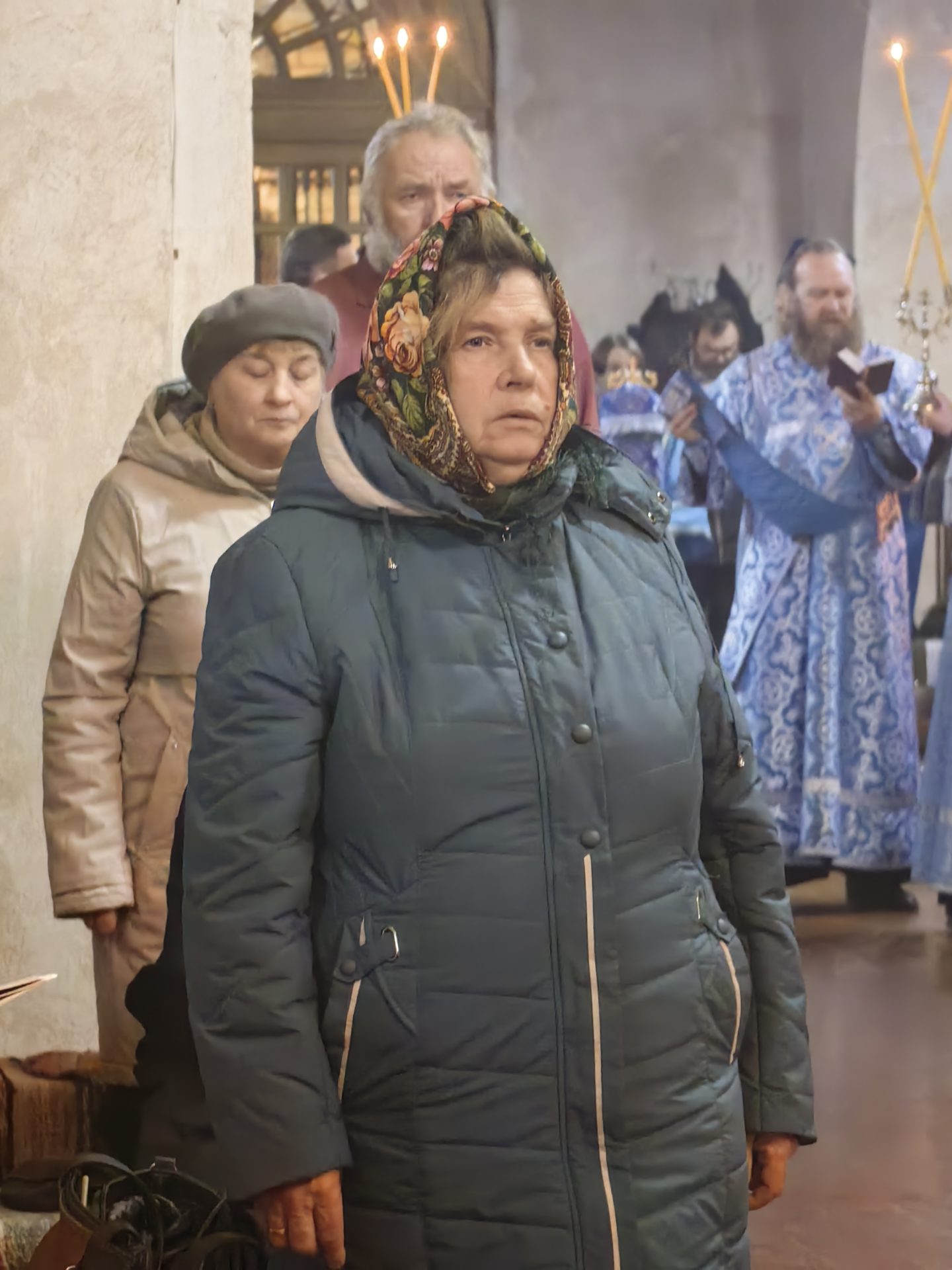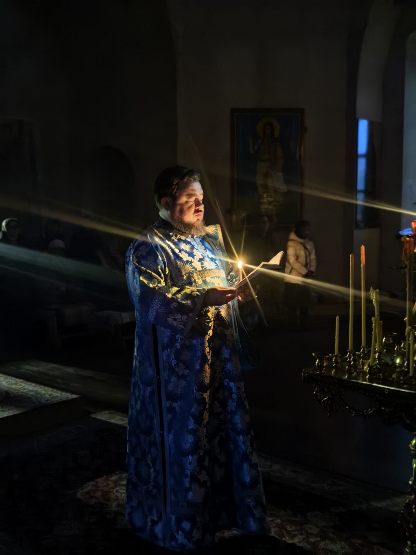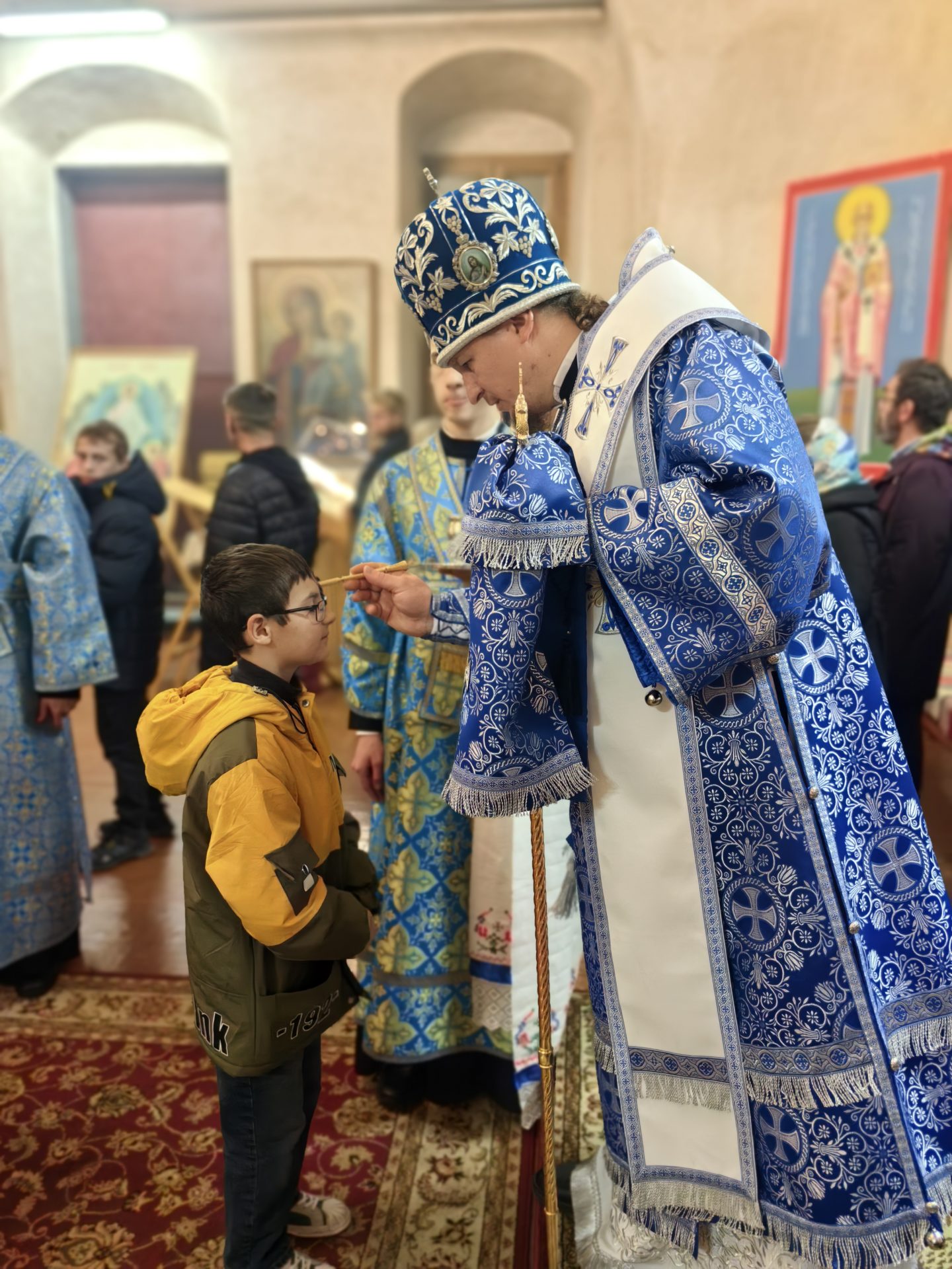 На полиелее было пропето величание празднику и епископ помазал всех молящихся освященным елеем.