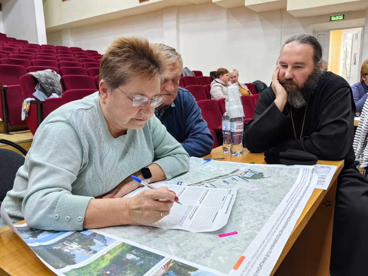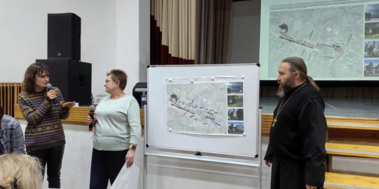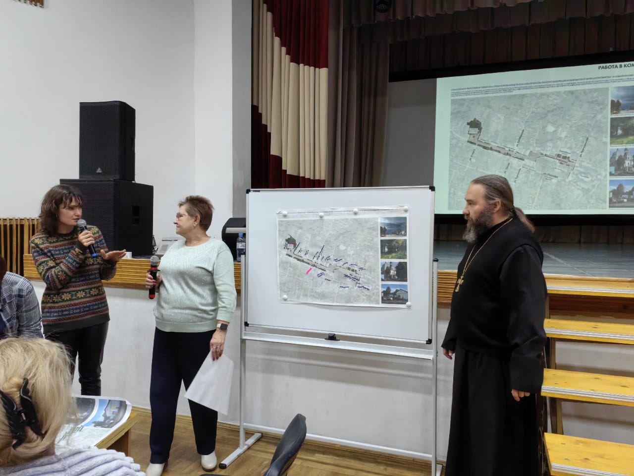 На встрече заслушали специалистов из архитектурного бюро. Обсуждение проходило в необычном формате: присутствующие разделились на 5 команд различного возраста. Собравшиеся обсудили как сделать центр села удобнее для жителей и привлекательнее для туристов. Делились идеями по улучшению территории у Красной Церкви, о необходимости новых зон отдыха, лавочек с навесами и организации движения у вокзала. После обсуждений, группы представили свои варианты.