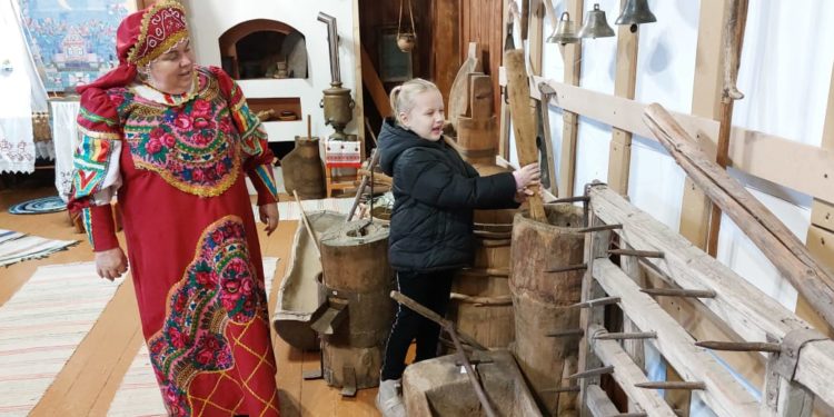 В день посещения юными гостями Казанского собора сотрудник храмового музея Елена Девина, встретив гостей в красивом русском – народном костюме,  провела обзорную экскурсию, познакомив детей с экспозицией русского народного быта, показав им уникальные старинные экспонаты из культуры и быта русского народа. Дети внимательно слушали рассказ о жизни наших предков, об убранстве русской избы и о традициях русского гостеприимства. Для детей было очень увлекательно погружение в русскую старину. Малыши увидели инструменты и приспособления, которыми убирали на Руси урожай, чем пахали, боронили землю, чем мололи зерно, просеивали муку, как в печи пекли хлеб. Посмотрели экскурсанты и ткацкий станок, на котором русские женщины ткали. Послушали рассказ о чаепитии, где главным на столе русских людей был самовар, в котором чай получался душистым и очень вкусным.
