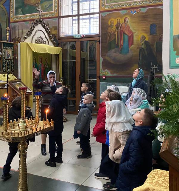 Детей встретила руководитель Воскресной школы «Радонеж» Клячина Татьяна Ивановна. Она рассказала детям об истории храма, ведь скоро храму исполнится 200 лет со дня основания, так же рассказала ребятам о преподобном Сергии Радонежском, в его честь освящен храм. Преподобный Сергий (в миру Варфоломей) — монах, основатель Троицкого монастыря под Москвой, преобразователь русского монашества и один из самых известных и почитаемых в мире русских святых . О чудесной помощи нам по молитвам к преподобному Сергию. О том, что для Бога все возможно, если молитва искренняя и с верой.