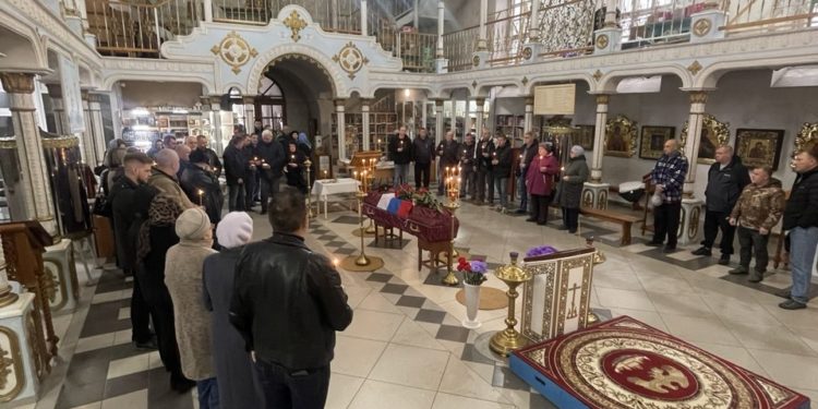 В Казанском соборе города Людиново прошло отпевание погибшего воина