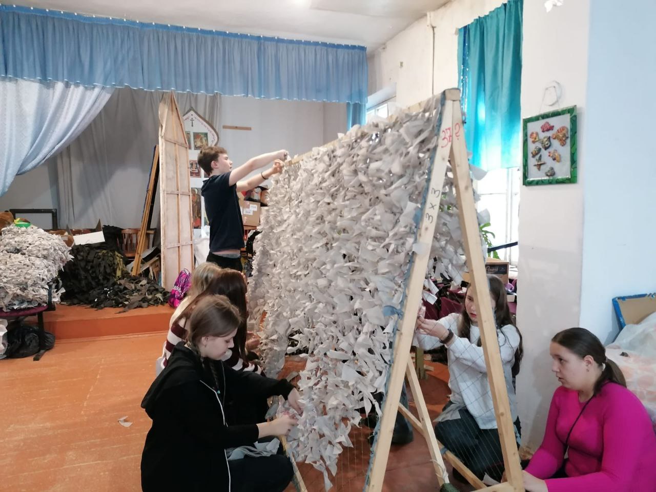 Благодаря общему усердию и сплоченности юные добровольцы практически завершили маскировочную сеть внушительного размера — 6×3 метра. Акция доброты и патриотизма – это наилучший пример, как дети вместе с взрослыми могут помочь важному делу: сохранить жизнь нашим воинам в трудные минуты, а также вложить маленькую частичку своего детского труда в одно общее дело – нашу Победу