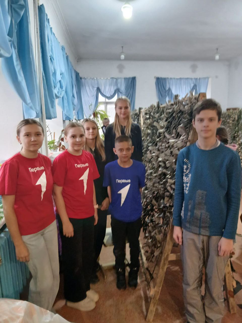 Первыми в эстафету добрых дел включились ученики 8 «Г» класса средней школы №3 вместе со своим классным руководителем и родителями. Ребята трудились плодотворно и с большим энтузиазмом, и результатом их работы стала готовая маскировочная сеть размером 3×3 метра. Потом эстафету подхватили активисты «Движения Первых». В единой команде с ними дружно и энергично трудились шестиклассники из средней школы №6 — юные участники «Движения Первых» со своим наставником и родителями.