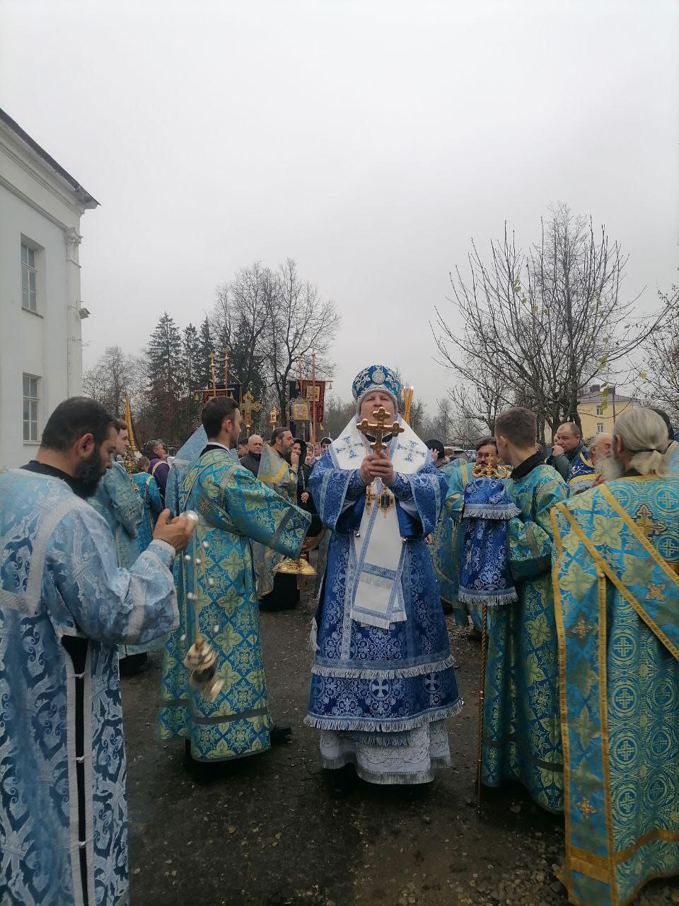После богослужений был совершён крестный ход вокруг храма. Затем Владыка обратился к богомольцам с архипастырским словом. Он поздравил всех с престольным праздником в честь Казанской иконы Божией Матери и Днём народного единства, и произнёс проповедь, подчеркнув значимость праздника в честь Казанской иконы Богородицы, безграничную помощь Богоматери всем страждущим, святое заступничество и покровительство, являемое Ею Людиновской земле.