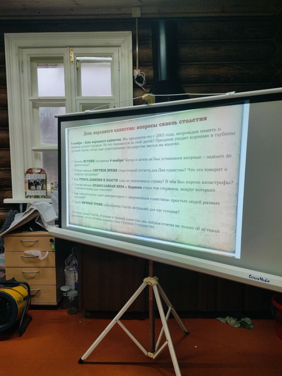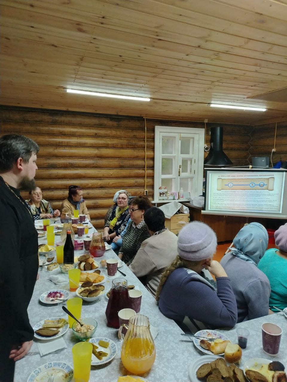После окончания богослужения по благословению епископа Макария Козельского и Людиновского была организована праздничная трапеза, на которой батюшка представил интереснейшую презентацию, посвященную Дню народного единства. Отец Иоанн поделился историей возникновения праздника, осветил ключевые моменты русской истории, упомянул имена героев, объединивших Русь, и поведал о современных традициях празднования Дня народного единства.