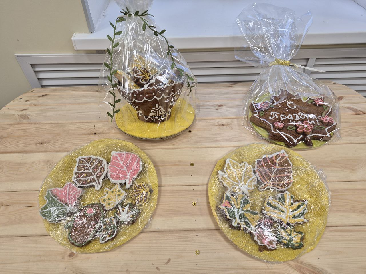 После завершения экскурсии по выставке дети из Воскресной школы «Светоч» кружка «Юный кондитер» подарили гостям изготовленные собственными руками красивые и вкусные прянички с тематическими праздничными надписями.
