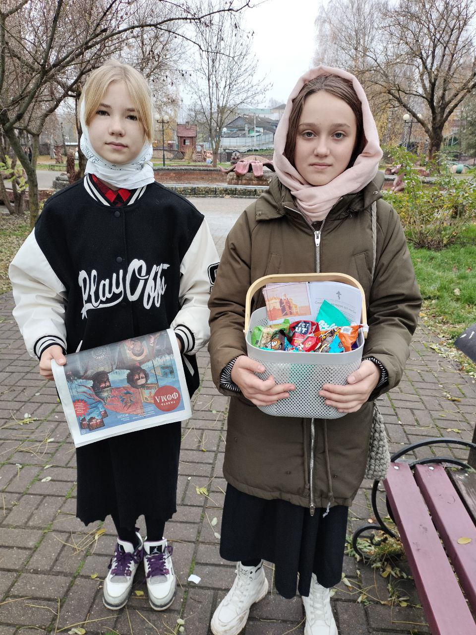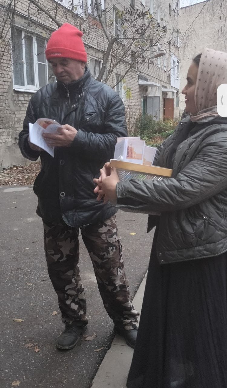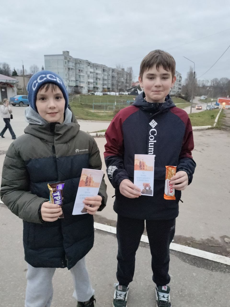 В день празднования Казанской Иконы Божией Матери и Дня народного Единства, представитель миссионерского отдела Козельской епархии Жиброва Ирина с воспитанницами Воскресной школы при Благовещенском Храме Барыкиной Ольгой и Половниковой Анной, провели праздничную миссионерскую акцию на улицах города Козельска.