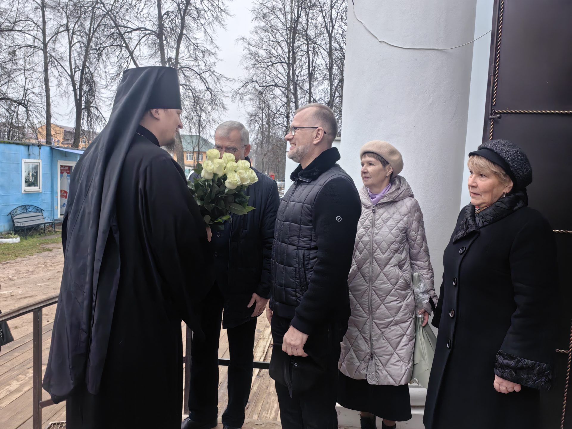 У входа в храм епископа встречали глава администрации Людиновского муниципального округа Г.Е. Ананьев и глава собрания депутатов Людиновского муниципального округа В.Е. Потапов.