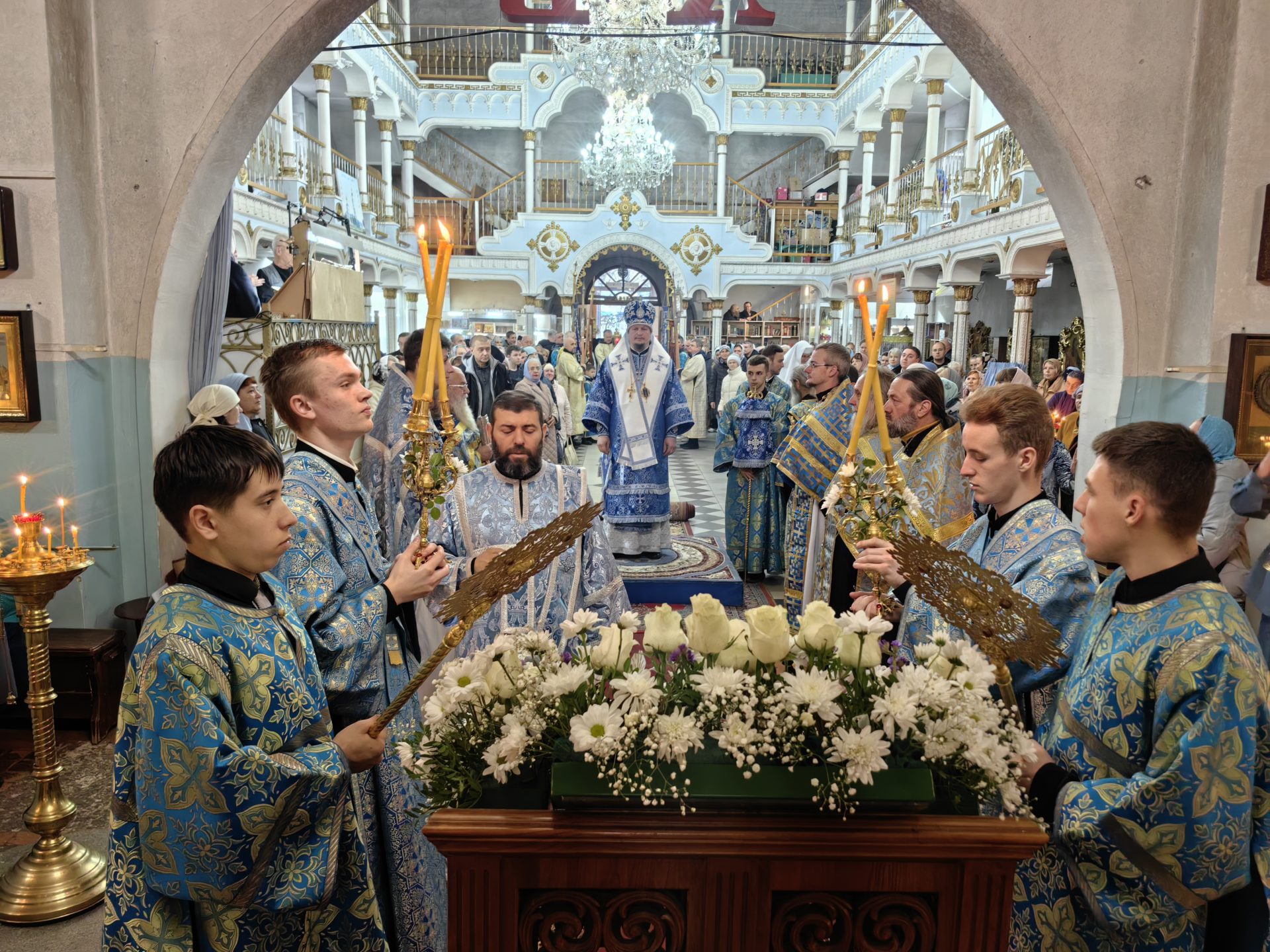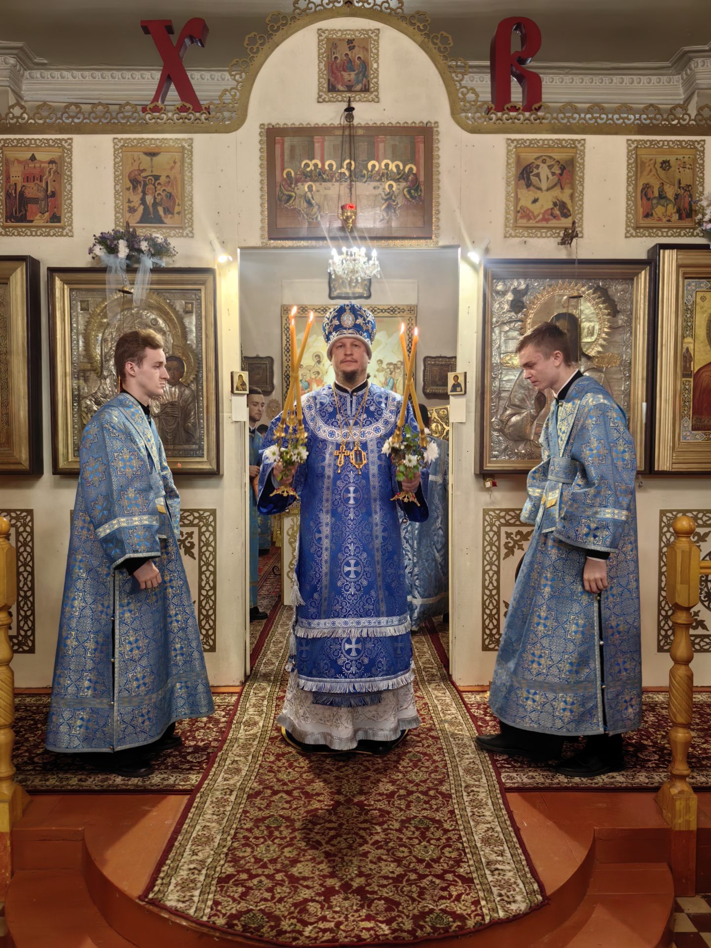 Архипастырю сослужили: настоятель храма митрофорный протоиерей Алексий Жиганов, протоиерей Михаил Карпенко, священник Алексий Сначев, Секретарь Епархиального Совета священник Филипп Лисенков, диакон Андрей Соколов и диакон Сергий Акопян.