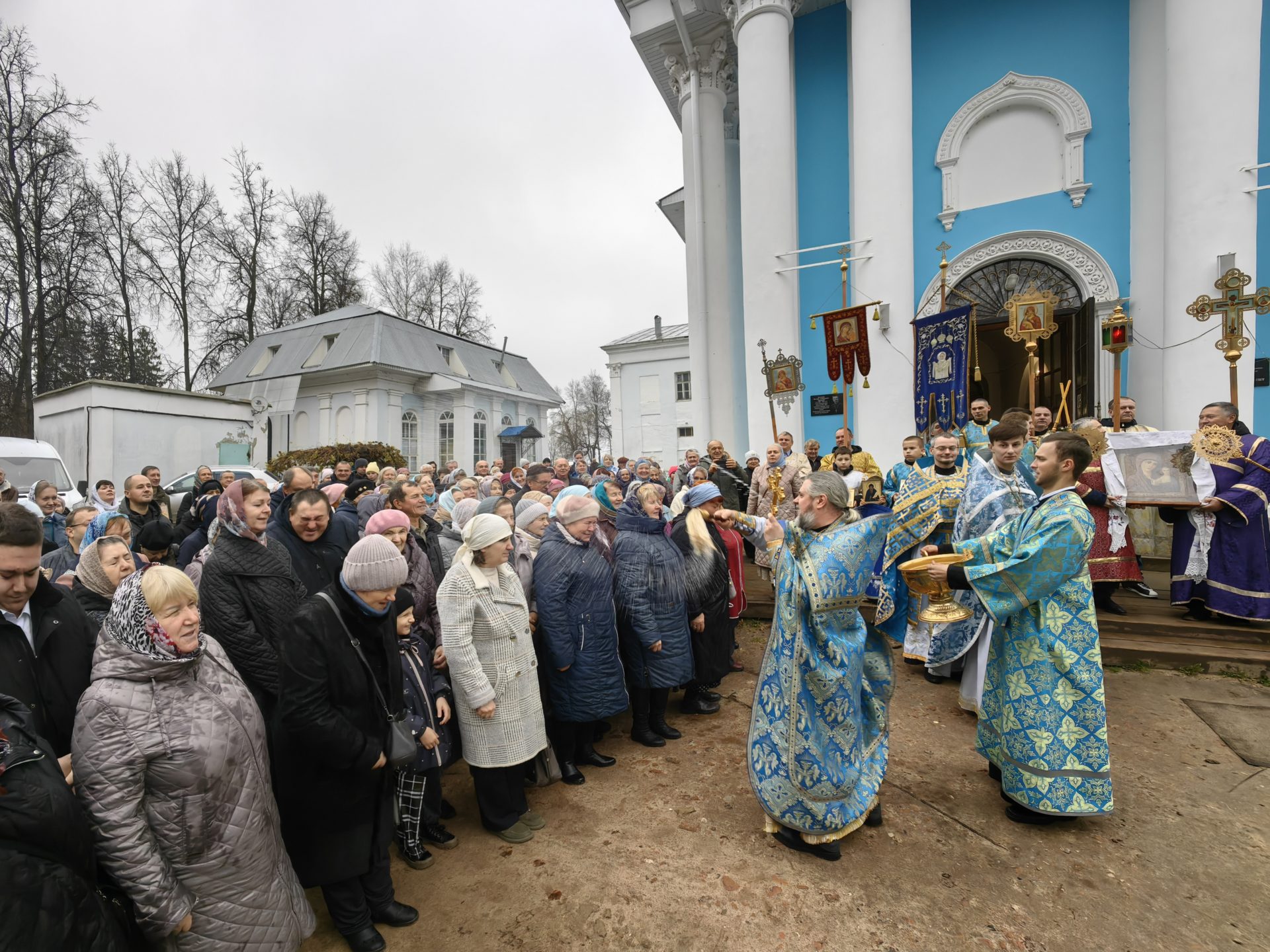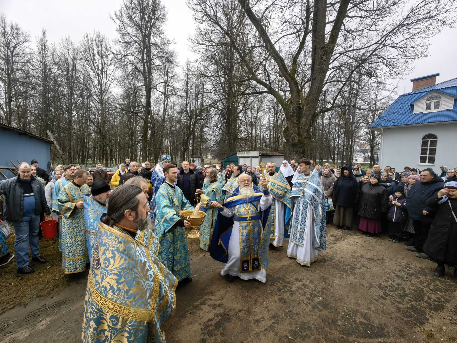 По окончании Литургии был совершен молебен Пресвятой Богородице и Крестный ход вокруг храма. Епископ и духовенсиво окропили верующих святой водой.