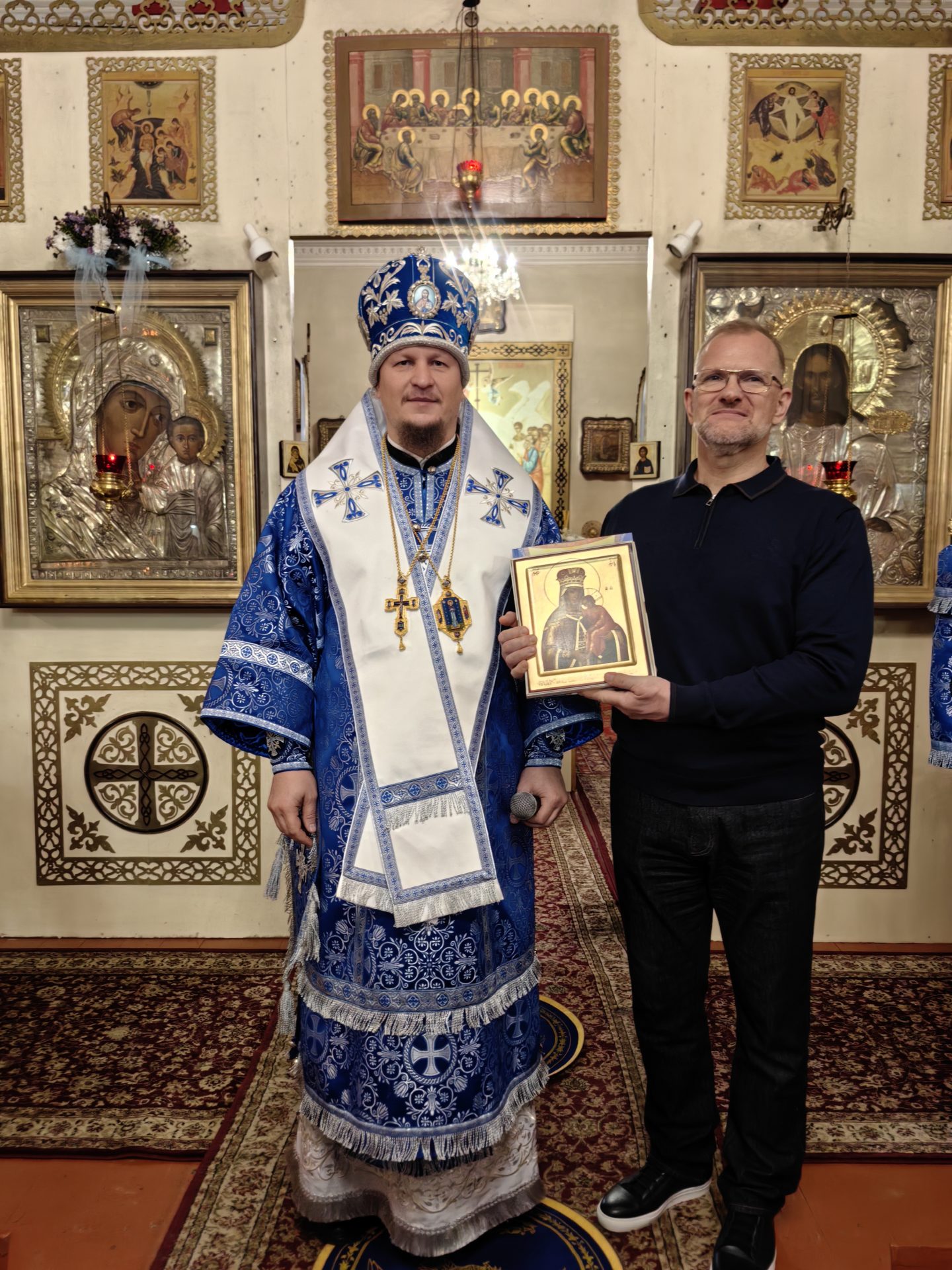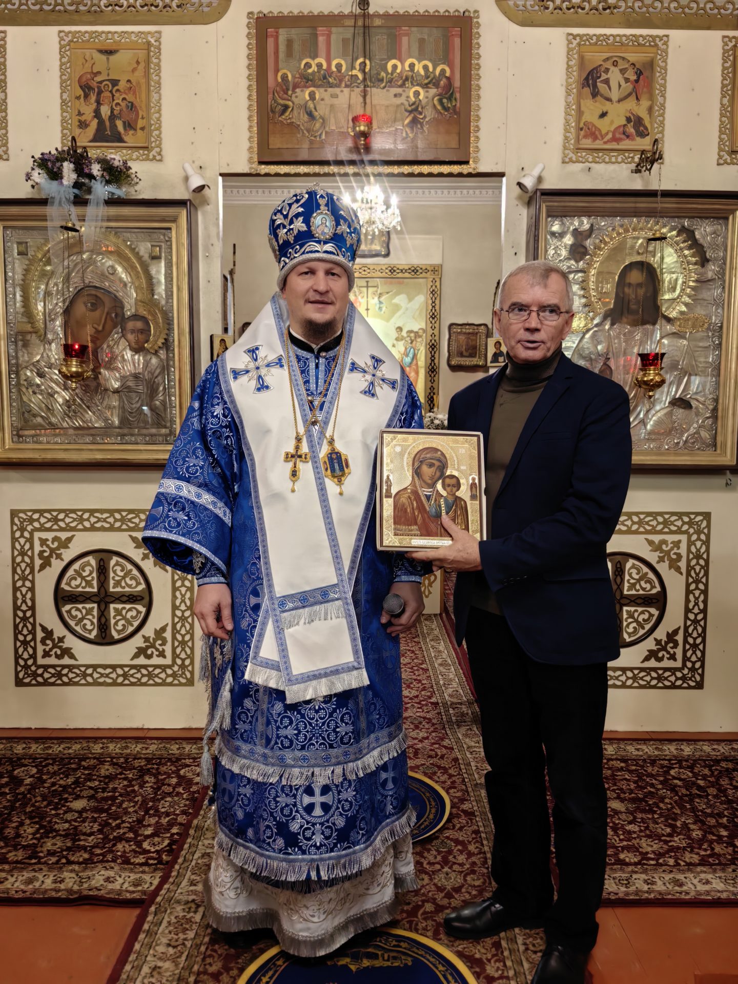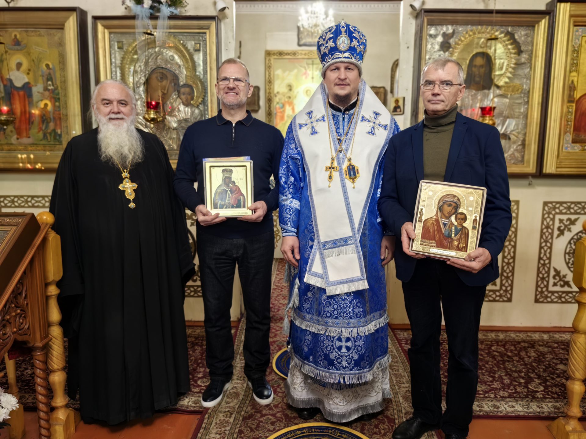 Также епископ Макарий вручил Г.Е. Ананьеву и В.Е. Потапову памятные образы Пресвятой Богородицы в благословение на предстоящее служение в качестве руководителей Людиновского муниципального округа.