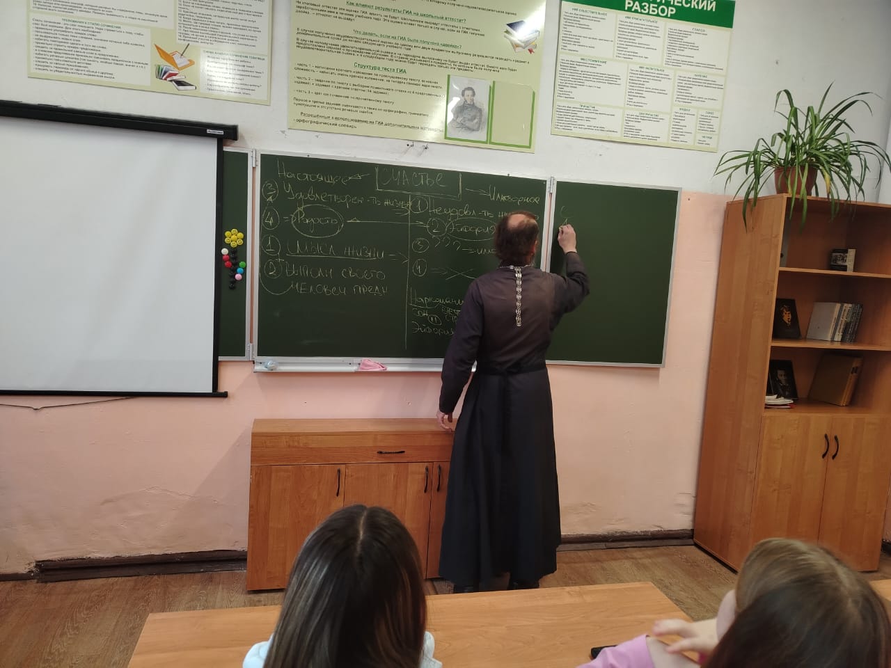 Встреча епархиального координатора по утверждению трезвости со старшеклассниками средней школы посёлка Козельского механического завода