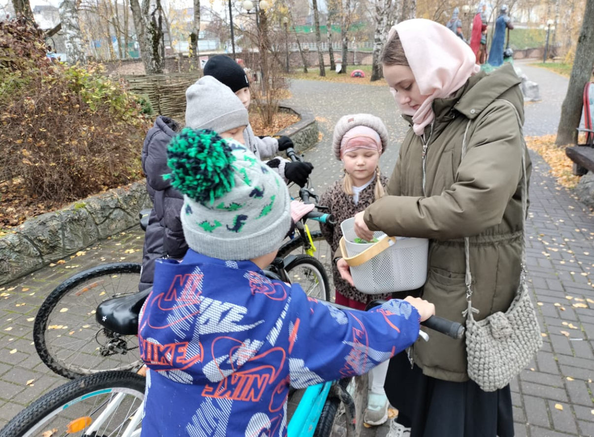Затем группа юных и старших миссионеров отправилась в городской парк, чтобы поздравить горожан с замечательным осенним праздником, и побеседовать и с детьми, и с взрослыми, о Боге, Его Церкви и о значении этого дня в церковном и гражданском календаре.