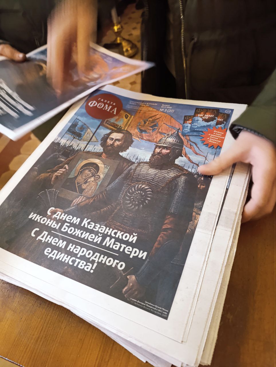 После богослужений каждый прихожанин получил газету «Фома», посвященную обретению Казанского образа Богородицы и Дню народного единства.