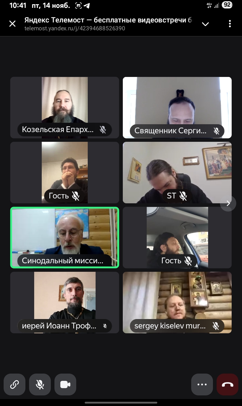 От Козельской епархии, в вебинаре, участвовал руководитель миссионерского отдела протоиерей Максим Садовников. По окончании встречи Александр Леонидович ответил на вопросы участников, а также подробно прокомментировал актуальные ситуации из практики миссионеров.