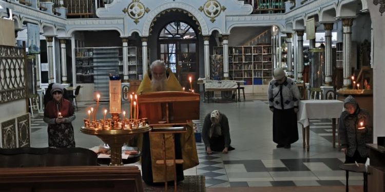 В Казанском соборе города Людиново отслужили молебен с акафистом святителю Николаю с прошениями о здравии Святейшего Патриарха Кирилла