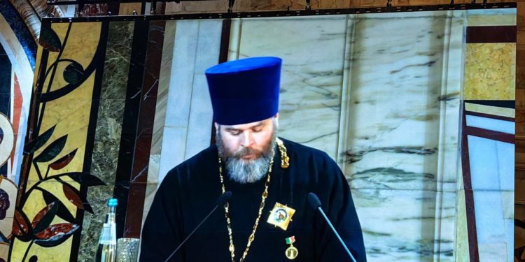 Свое выступление отец Алексий начал со свойственной пастырю простотой и скромностью, признавшись, что высокая трибуна для него — не меньшее испытание, чем передовая:
