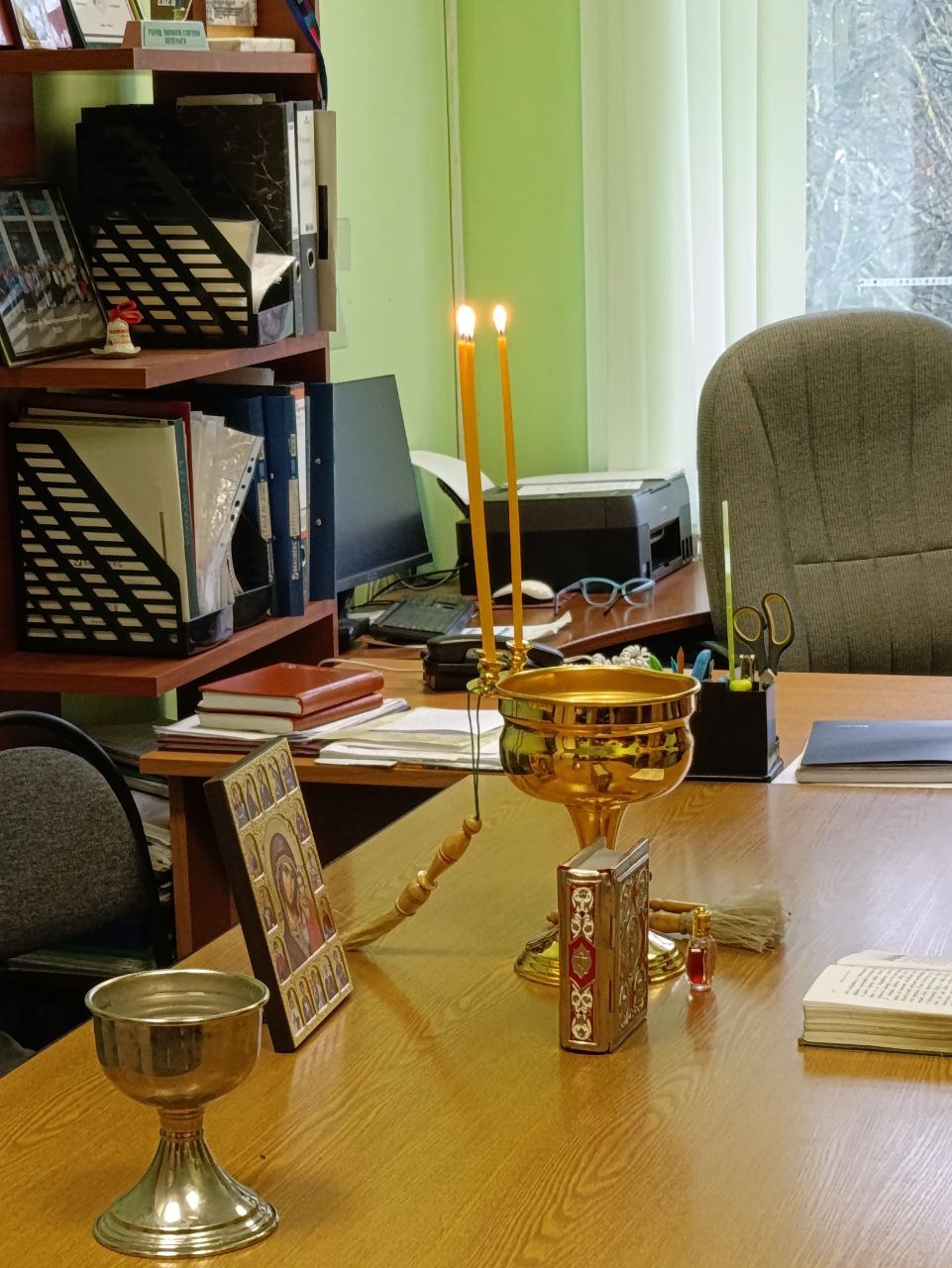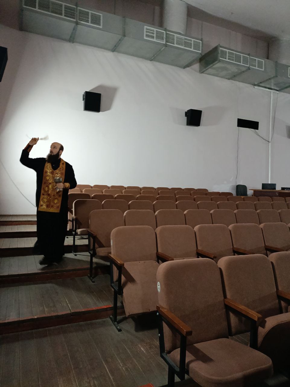 Перед началом освящения отец Сергий объяснил коллективу Центра смысл освящения. Любое освящение это выражение доверия Богу. После освящения отец Сергий передал в дар Центру Казанскую икону Божией Матери с пожеланием молиться ей перед началом каждого рабочего дня. Так же батюшка пожелал чтобы Культурно-досуговый центр был таким инструментом с помощью которого общество становится лучше, добрее и нравственней, а каждое проводимое мероприятие напоминало людям о духовно-нравственных ценностях.