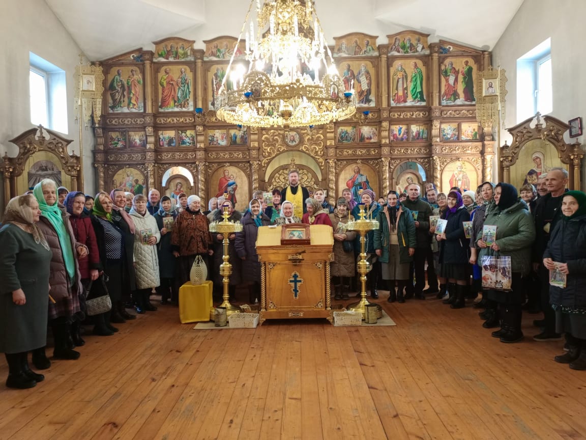 За богослужением были вознесены особые прошения и молитва о Святой Руси, по благословению Святейшего Патриарха Московского и всея Руси Кирилла эта сугубая молитва совершается во всех храмах Русской Православной Церкви за каждым богослужением. По окончании службы отец Александр поздравил всех женщин в Днём матери и преподнёс на молитвенную память небольшие картины с изображением схиархимандрита Илия (Ноздрина).