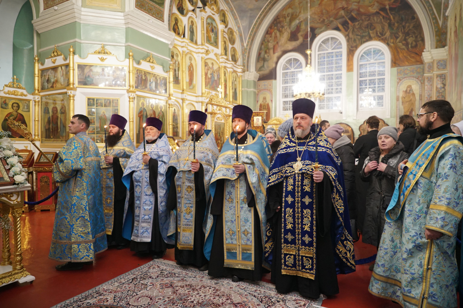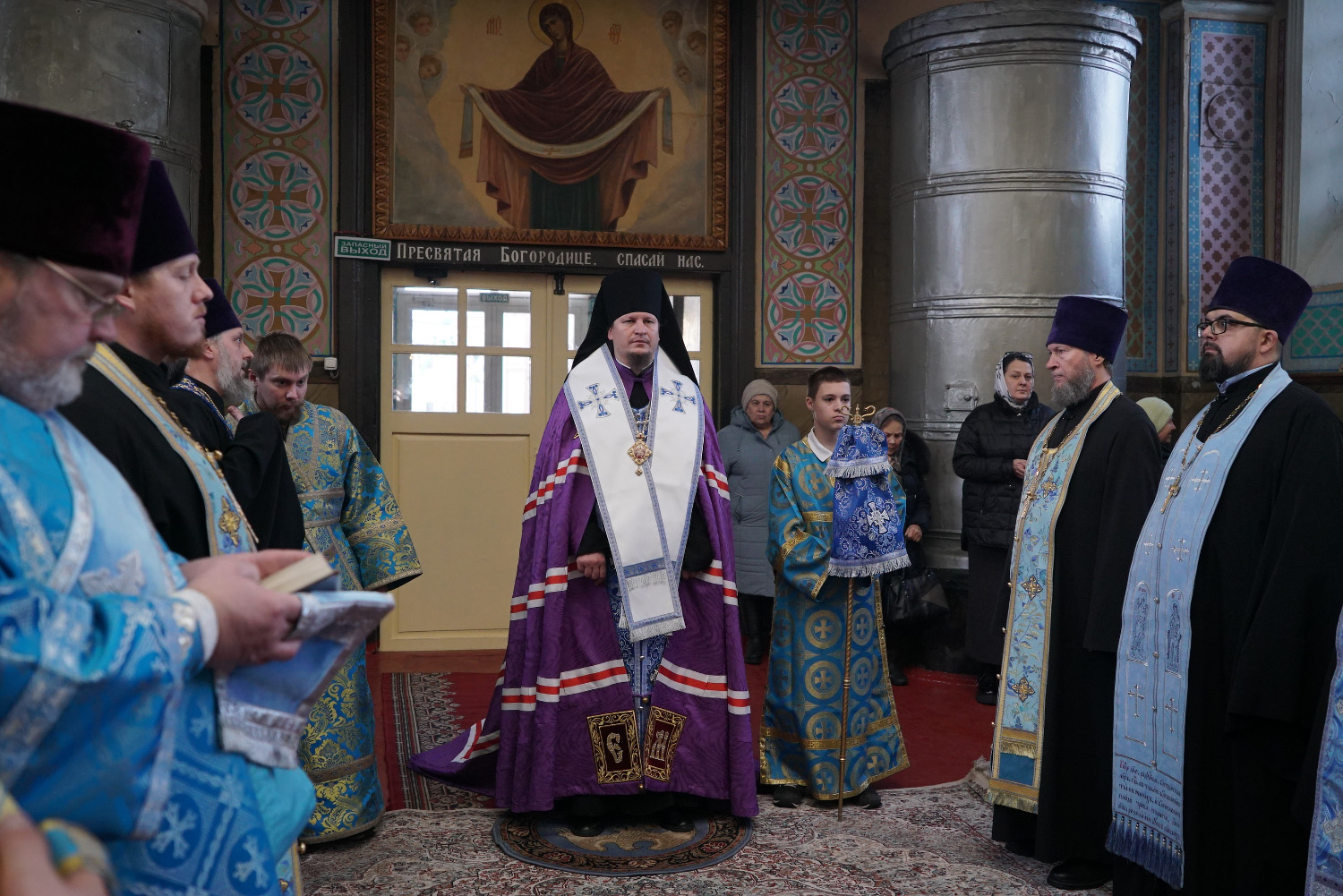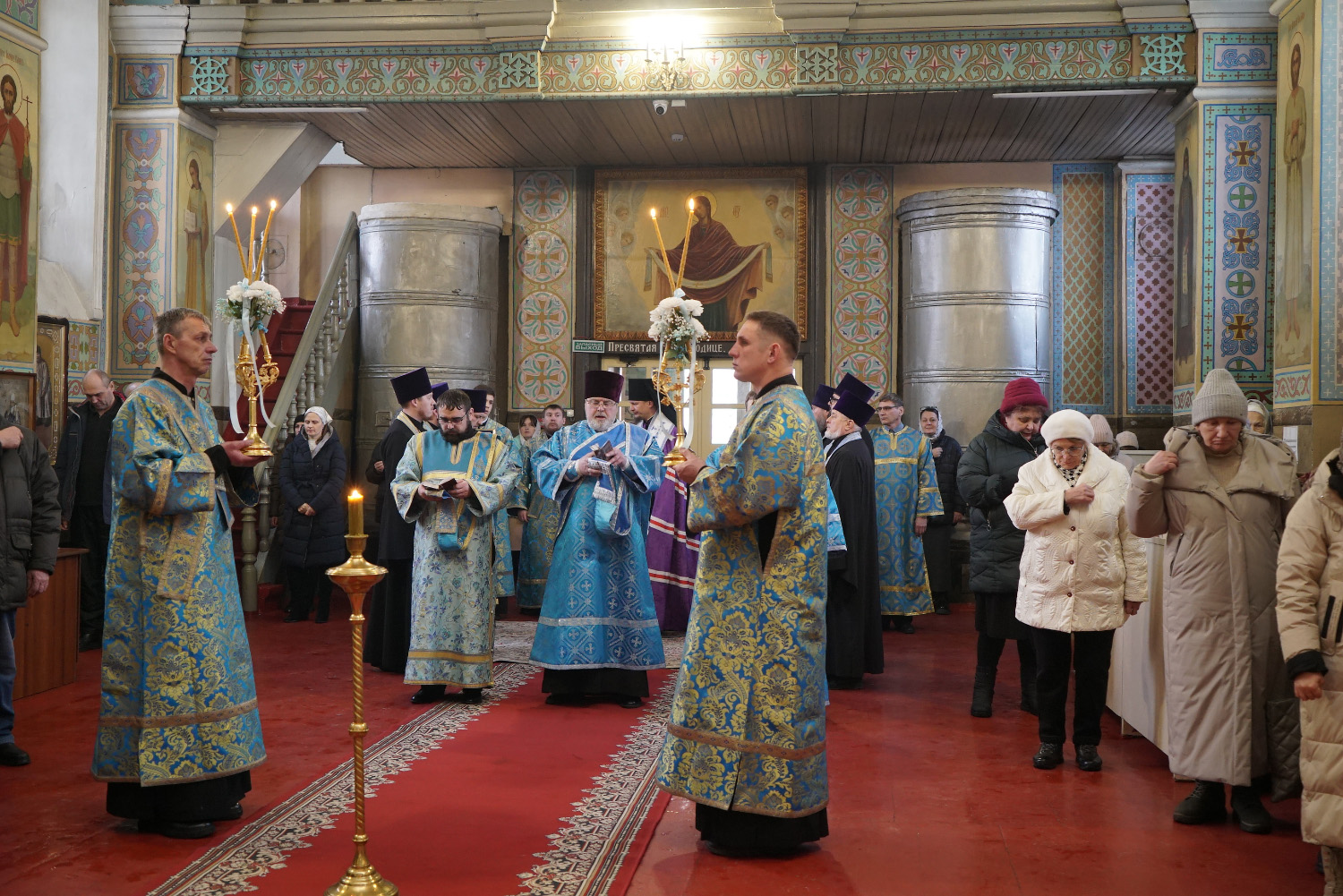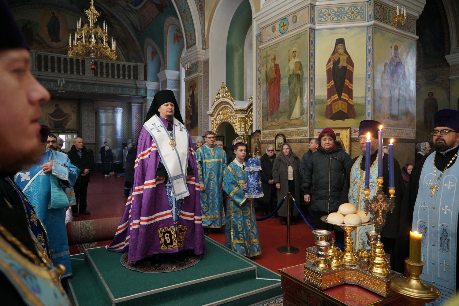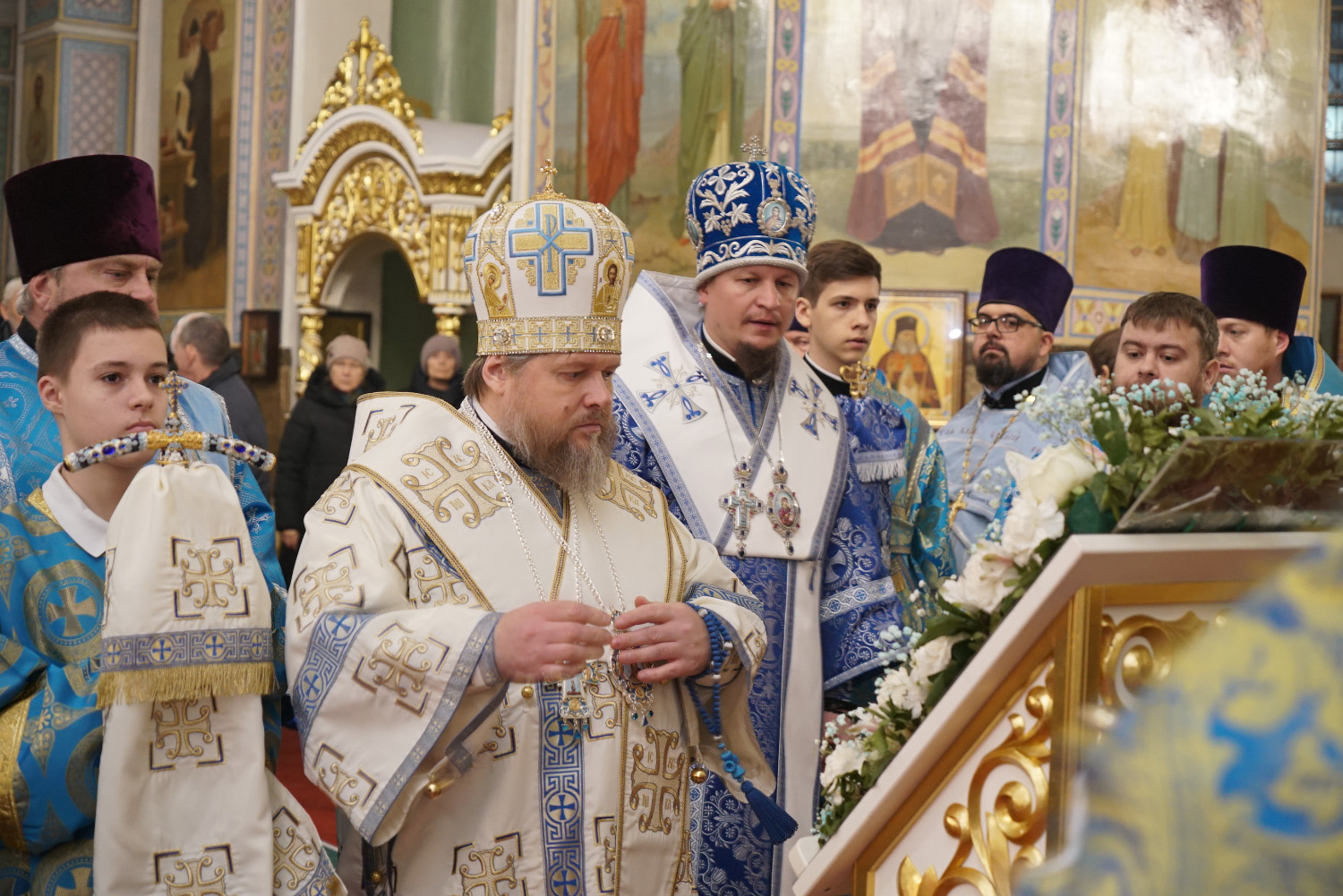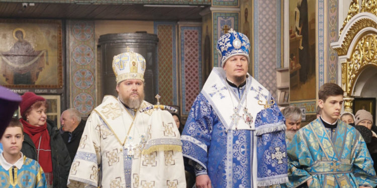 3 декабря накануне праздника Введения во Храм Пресвятой Богородицы епископ Козельский и Людиновский Макарий сослужил праздничное Всенощное бдение епископу Бийскому и Белокурихинскому Серафиму в Успенском кафедральном соборе г. Бийска.