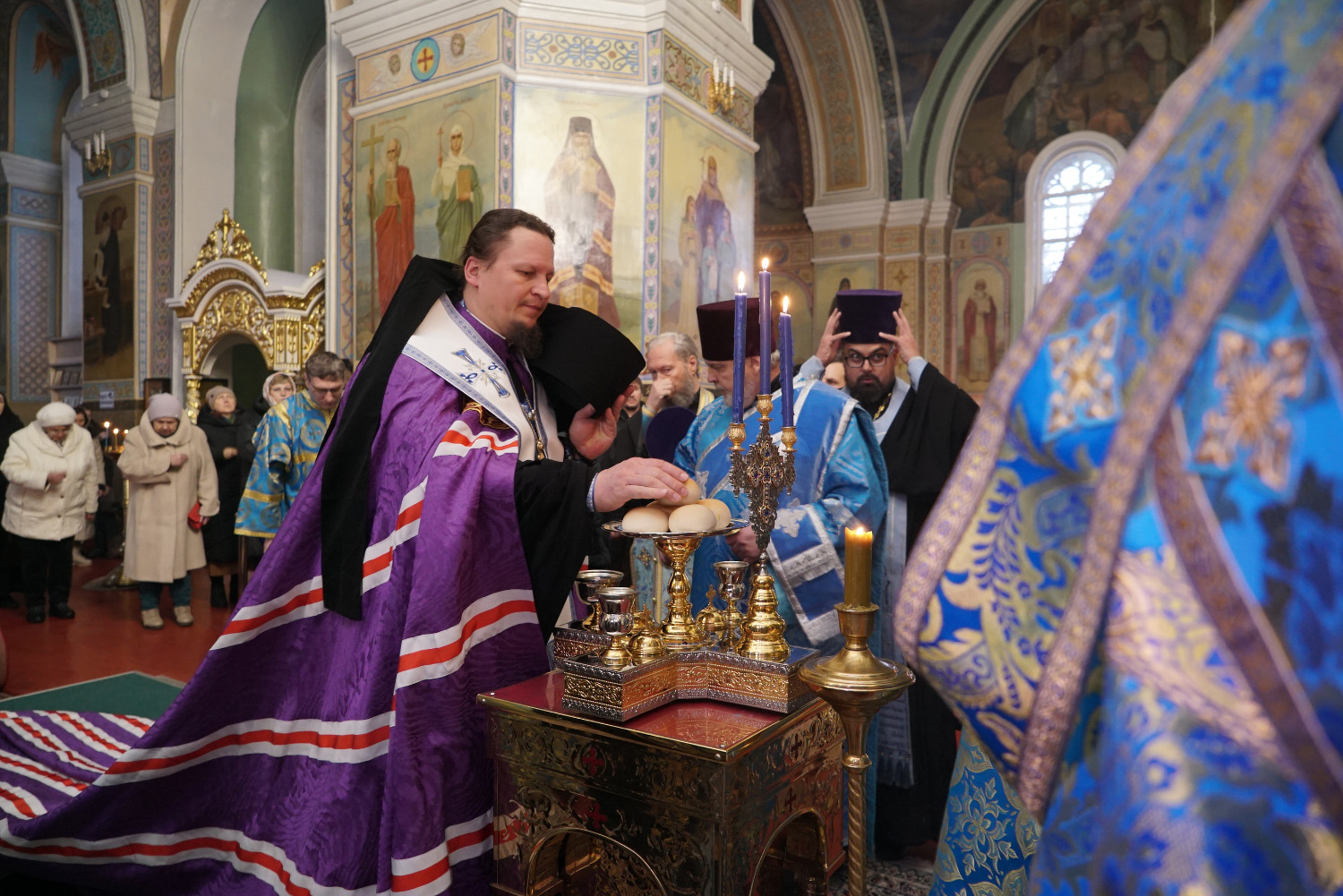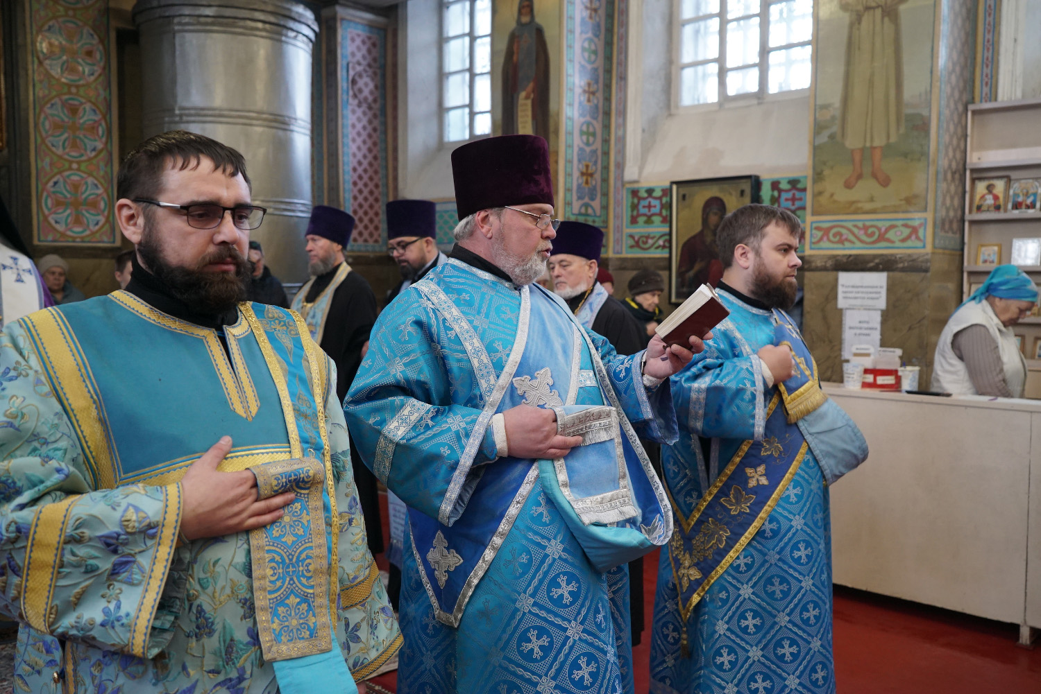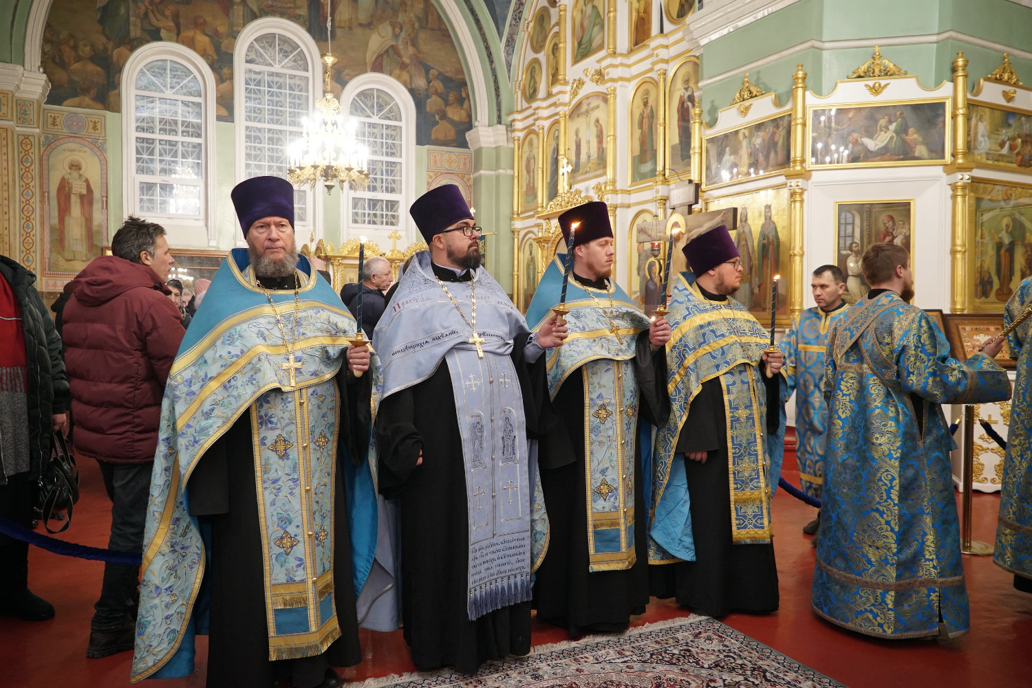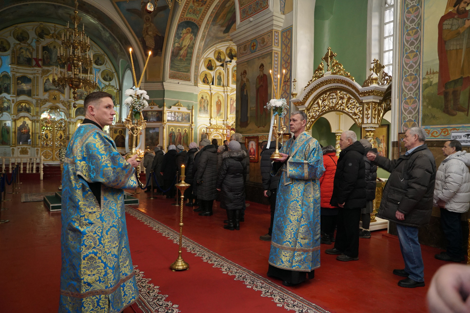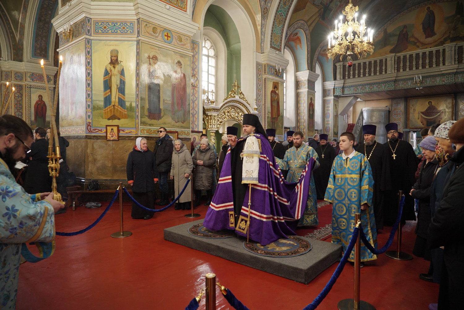 3 декабря накануне праздника Введения во Храм Пресвятой Богородицы епископ Козельский и Людиновский Макарий сослужил праздничное Всенощное бдение епископу Бийскому и Белокурихинскому Серафиму в Успенском кафедральном соборе г. Бийска.