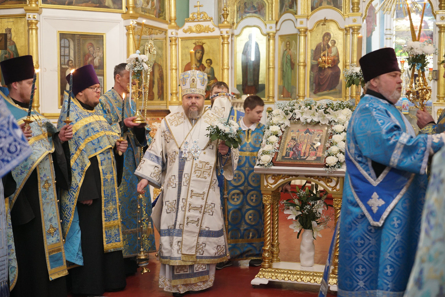 Архипастырям сослужило духовенство Бийской епархии.