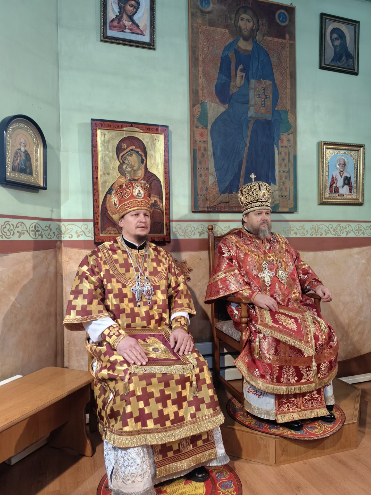 Архипастырям сослужили: ключарь Успенского кафедрального собора г. Бийска протоиерей Александр Петров, настоятель Екатерининского храма священник Максим и диакон Никита Гологузов.