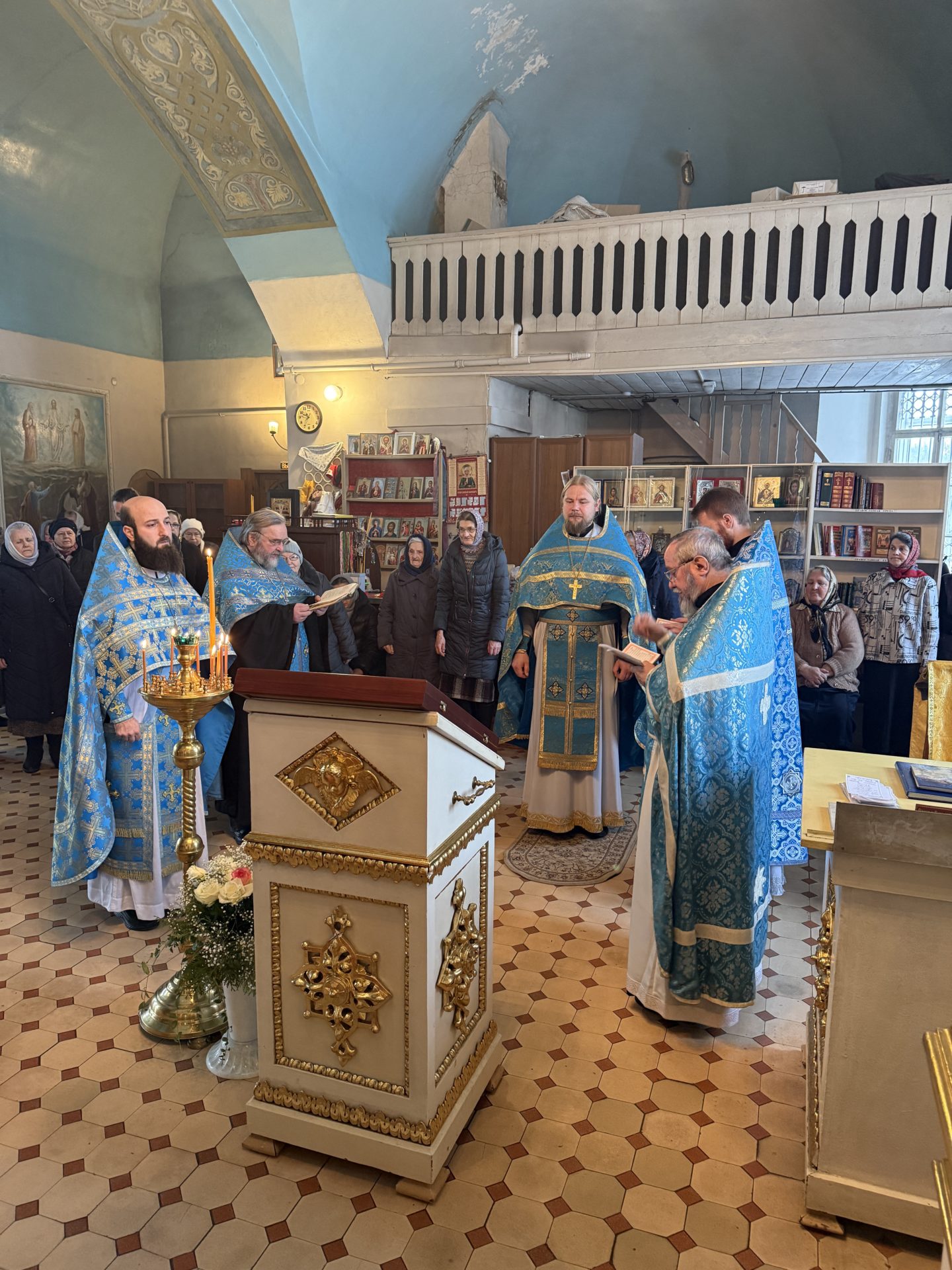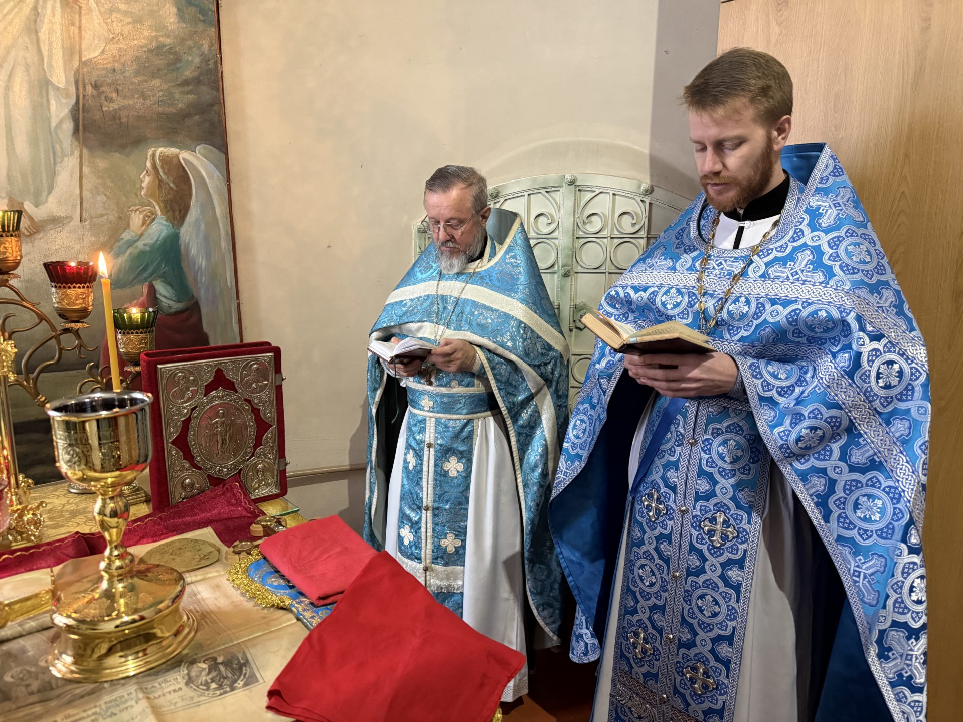 Всенощное бдение с литией, акафист, Литургию и молебен с каноном Пресвятой Богородице о воинах возглавил настоятель храма иерей Сергий. Пресвитерский чин составили иерей Николай Луцюк и гости прихода — иерей Елисей Тимофеев и иерей Андрей Товмасян, отмечающие день своей священнической хиротонии.