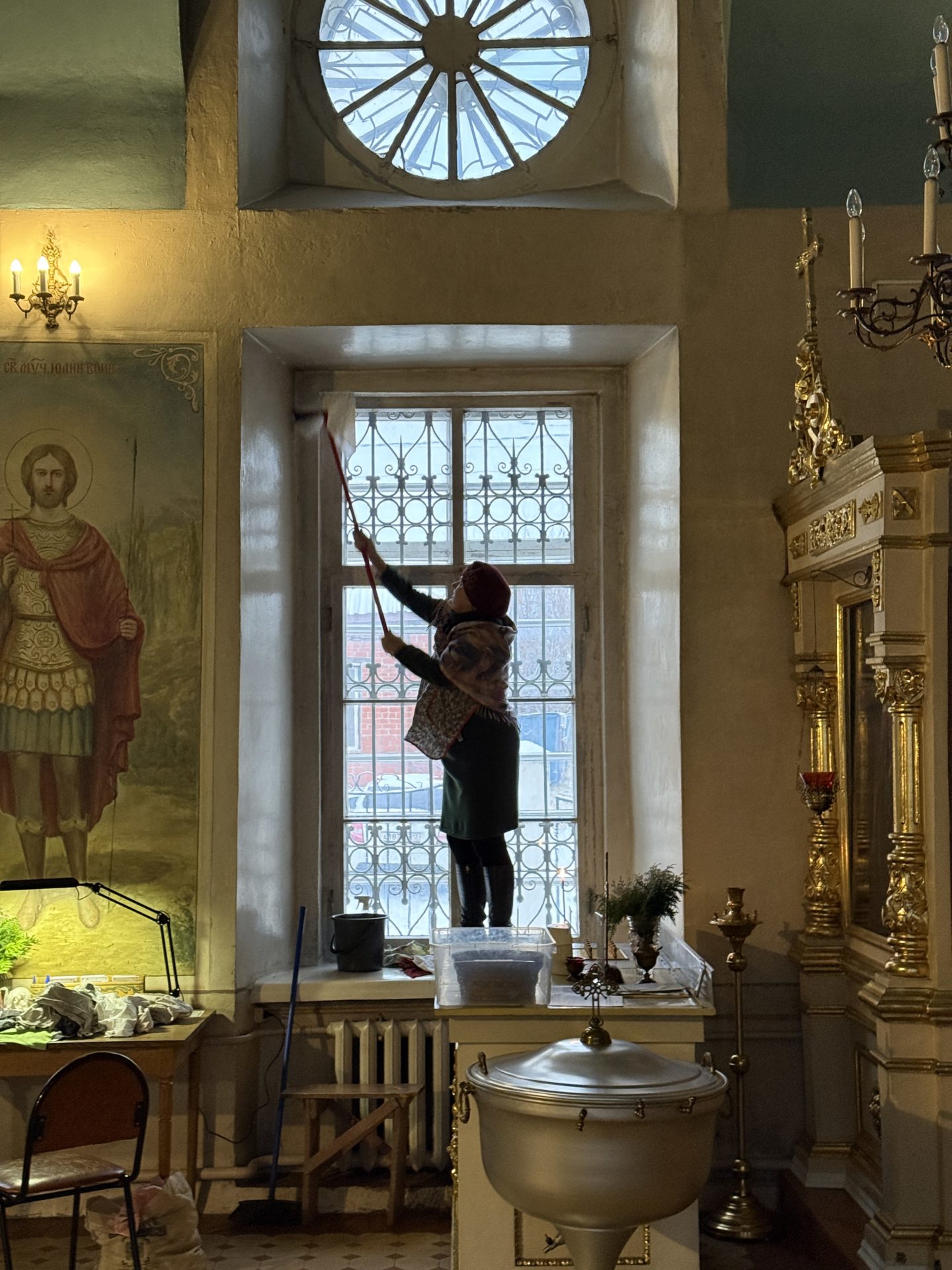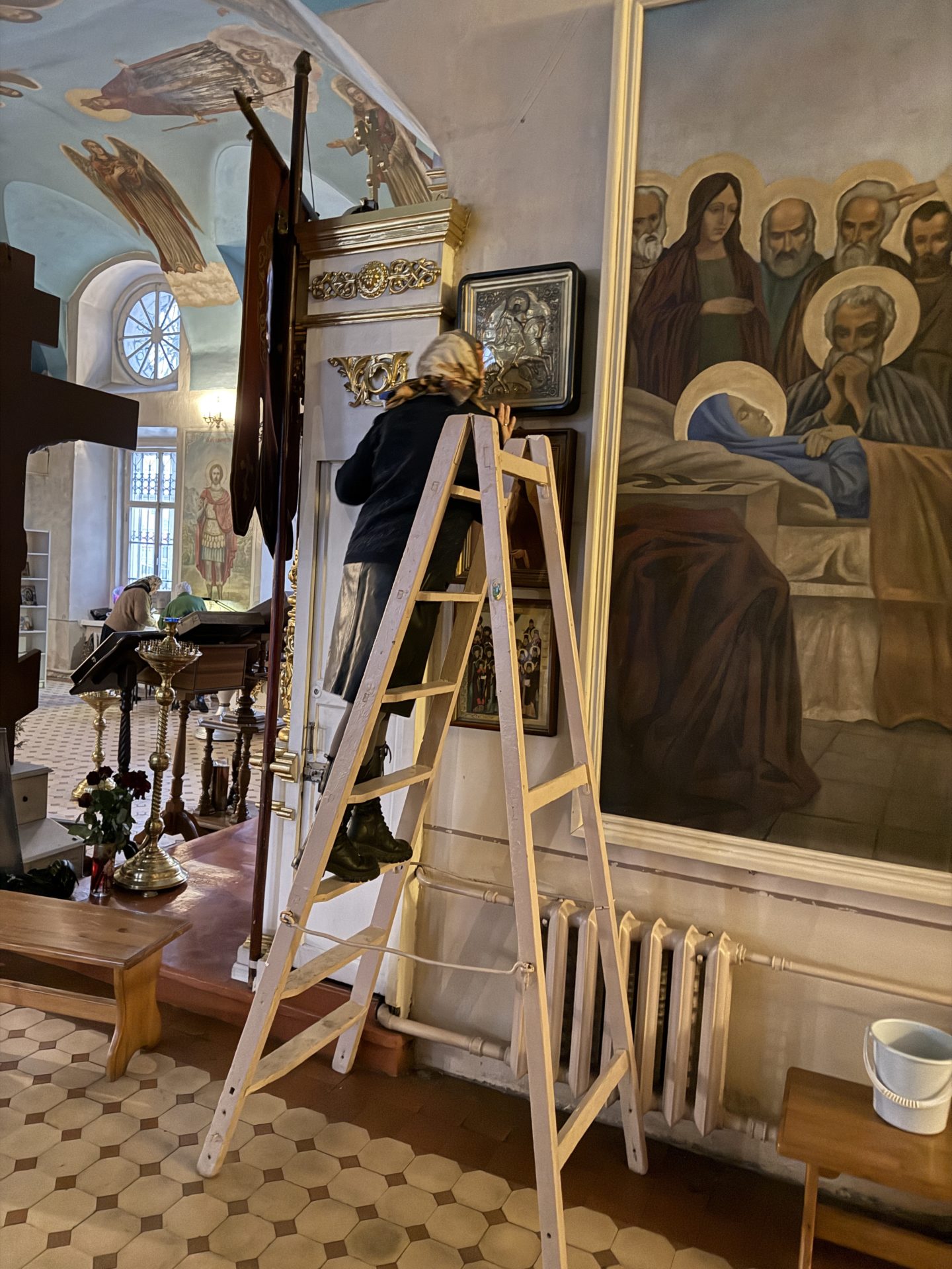 Уборка в Благовещенском храме к празднику Рождества Христова