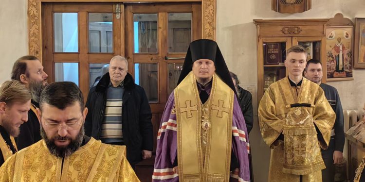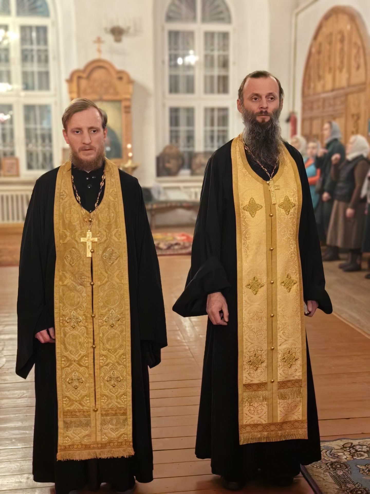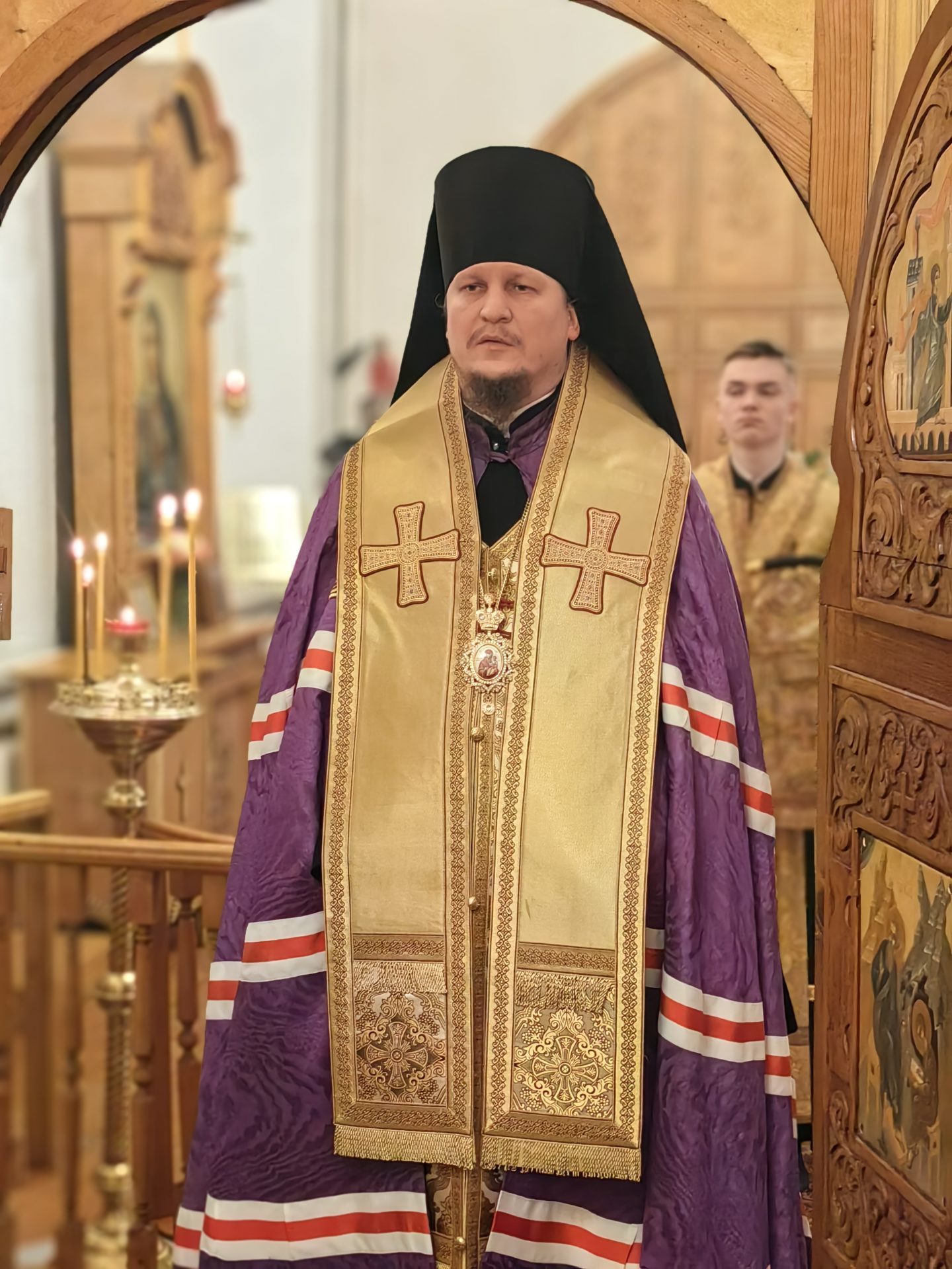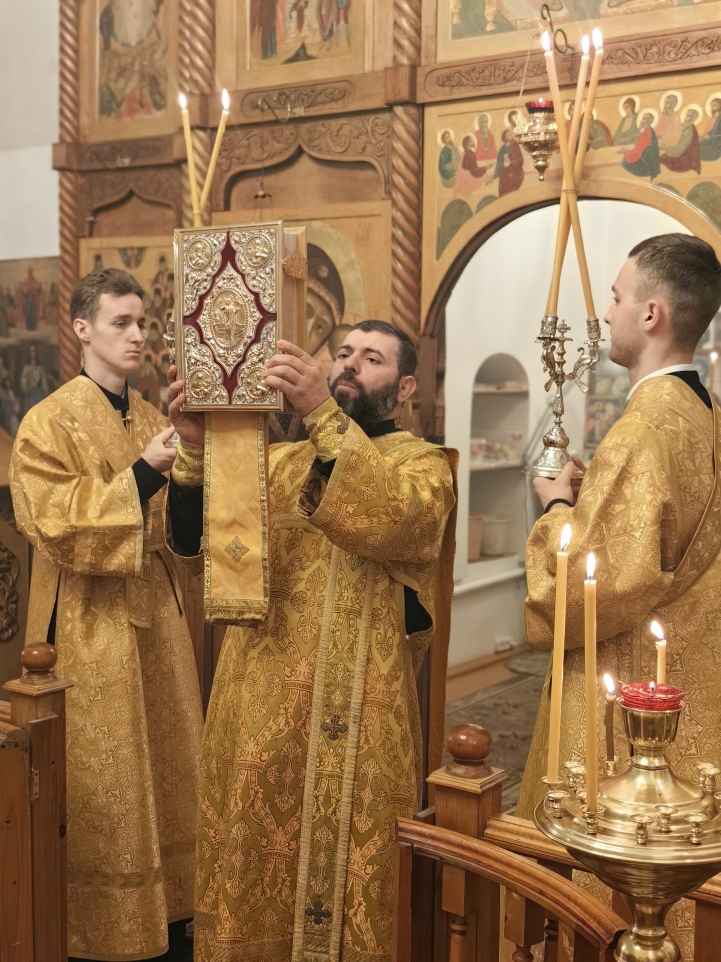 Епископу сослужили: настоятель храма священник Сергий Дрозд, иеромонах Тихон (Клинов), священник Лев Шиповский, Секретарь Епархиального Совета священник Филипп Лисенков, диакон Николай Кречетов и диакон Сергий Акопян.