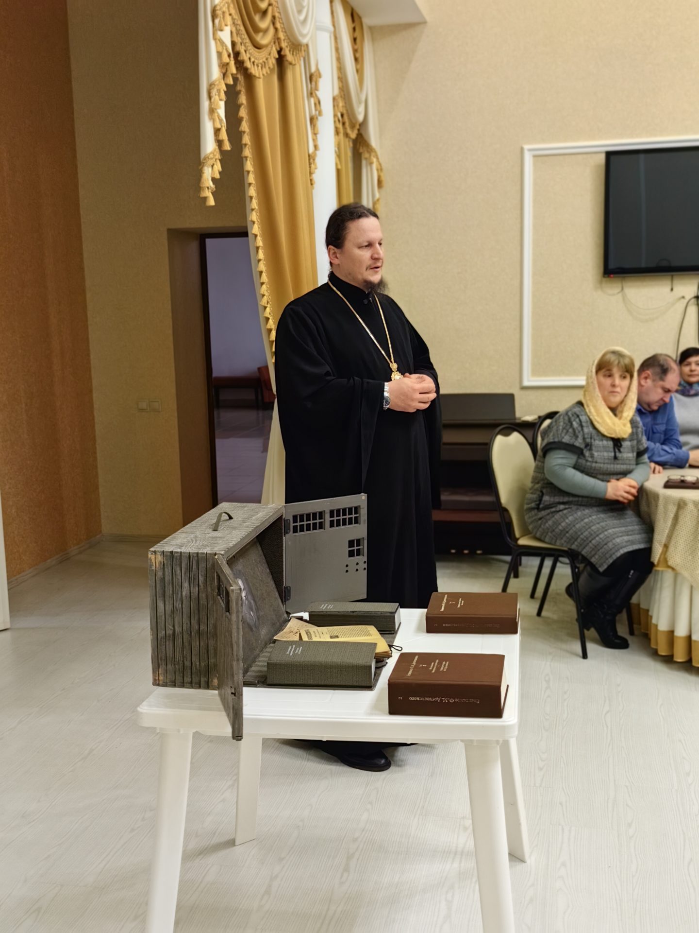 19 декабря в Ульяновском культурно-досуговом центре прошла презентация факсимильного издания Евангелия, принадлежавшего Ф.М. Достоевскому. Издание представил библиотекарям Ульяновского муниципального округа епископ Козельский и Людиновский Макарий.